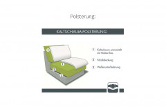 - Sitz: hochwertiger Kaltschaum, dauerelastische Wellenfedern