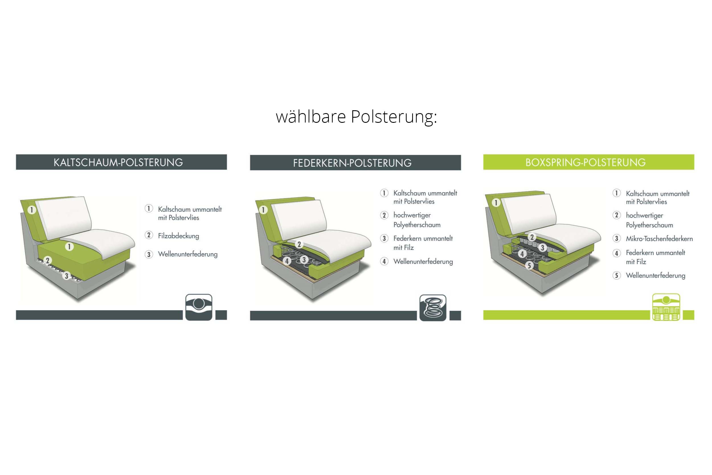 Bei der Boxspring-Polsterung erhöht sich die Sitzhöhe um ca. 2 cm.