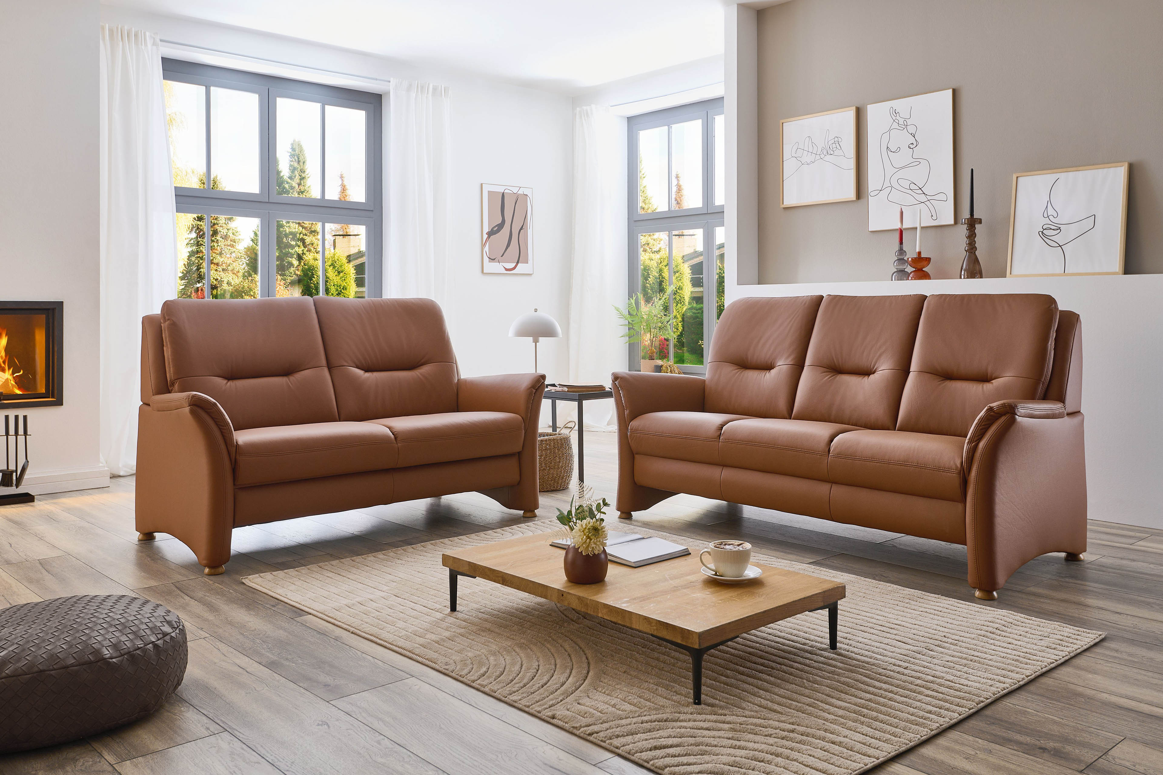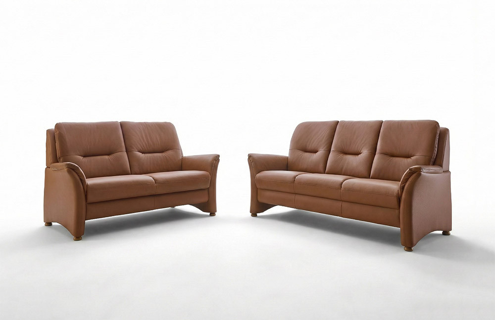 Eine adrette Polstergarnitur, welche sich in unserem Angebot aus einem ca. 168 cm breiten 2,5-Sitzer sowie einem ca. 194 cm breiten 3-Sitzer zusammensetzt und dabei ausreichend Fläche für gemeinsames Beisammensein mit der Familie bietet, erhalten Sie mit dem Modell PN-PF19167 des Polstermöbelherstellers Polinova. Ein hochwertiges sowie zugleich elegantes, pigmentiertes Leder in der Farbe Parkett kleidet das bezaubernde Duo und sorgt für eine warme Farbgebung in Ihren Räumlichkeiten. In puncto Sitzkomfort erhalten Sie bei diesem Modell die Möglichkeit, aus drei verschiedenen Polsterungen Ihre favorisierte auszuwählen und so zu jeder Zeit einen traumhaften Wohlfühlgenuss zu erfahren - weg mit dem Alltagsstress, her mit der Glückseligkeit! Weitere Annehmlichkeiten, die das Leder-Duo noch attraktiver gestalten, finden Sie in den Zusatzoptionen und können gleich mitbestellt werden. Sowohl der 2,5-Sitzer als auch der 3-Sitzer lassen sich mit einem praktischen Bettkasten ausstatten. Dieser bietet ausreichend Stauraum, um Tagesdecken sowie Kissen stets geordnet und schnell unterzubringen. Stellen Sie sich Ihre Polstergarnitur ganz nach Ihren Wünschen sowie Vorlieben zusammen und erweitern Sie das Angebot mit einem passenden Sessel oder Hocker für einen zusätzlichen Sitzplatz. Zögern Sie nicht länger, das Modell PN-PF19167 von Polinova wartet darauf, auch in Ihrem Zuhause Einzug zu halten.