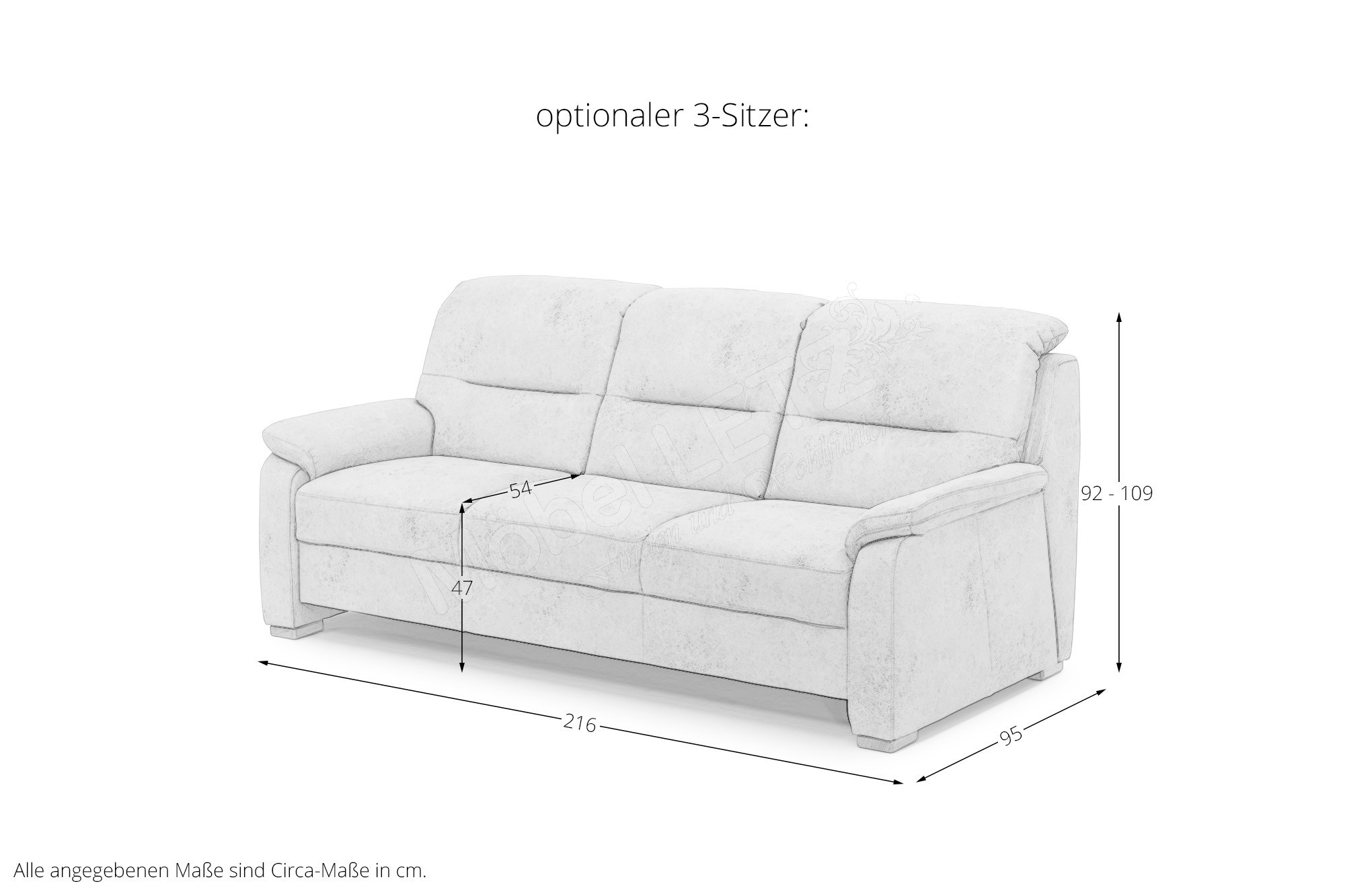 - zusätzliches Sofa-  mit zusätzlichem Sofa 3-Sitzer, ca. BHT: 216/92-109/95 cm