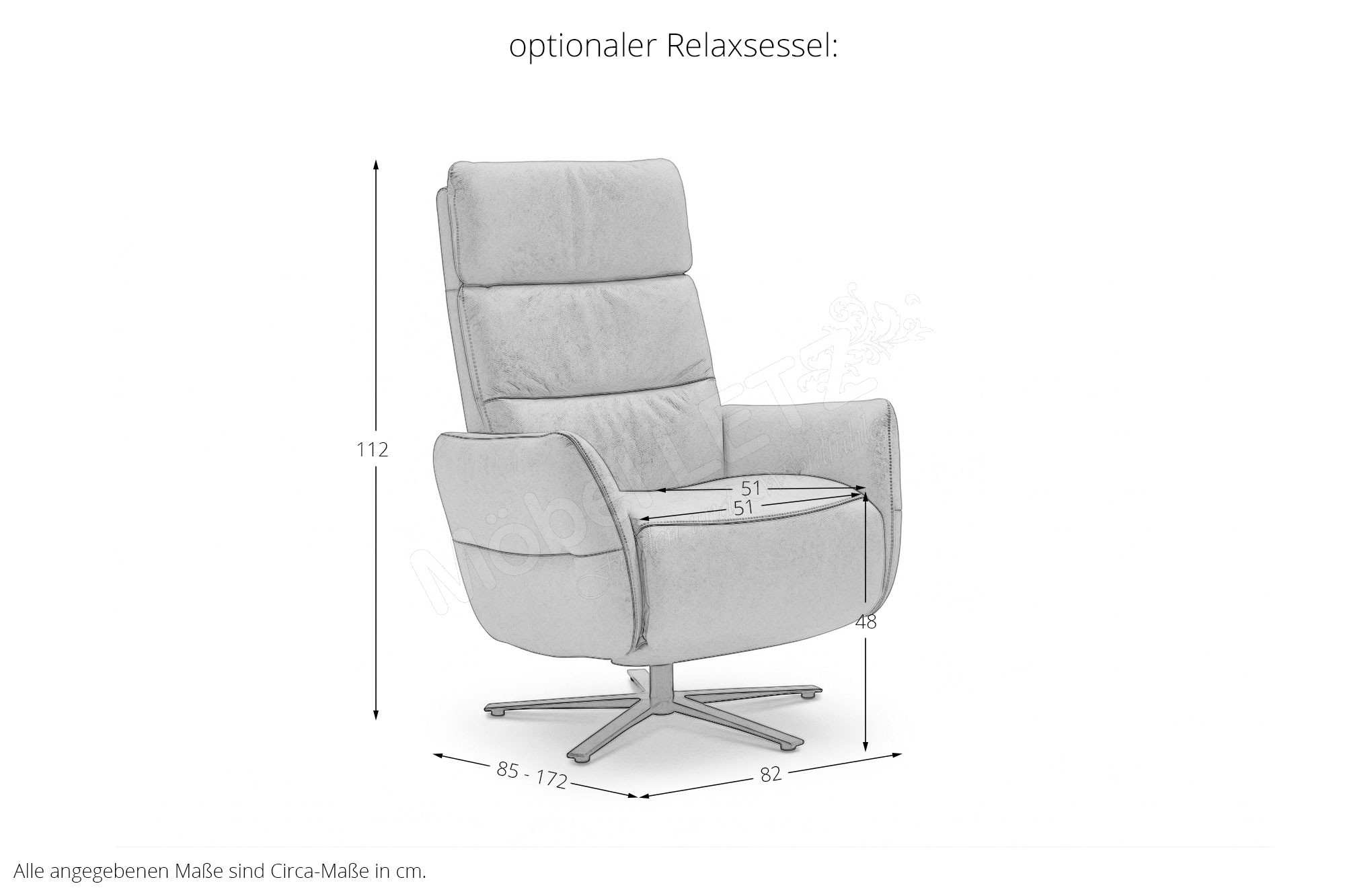 ca. BHT: 82/112/85 cm, Sitzhöhe ca. 48 cm, Sitztiefe ca. 51 cm, Sitzbreite ca. 51 cm, Liegelänge ca. 172 cm