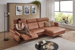 Verstellung von Rücken und Fußteil, von der Sitz- zur TV-Liegeposition durch einen E-Motor, mittels innenliegenden Berührungssensor (am Sitz seitlich liegend) ausgelöst.
