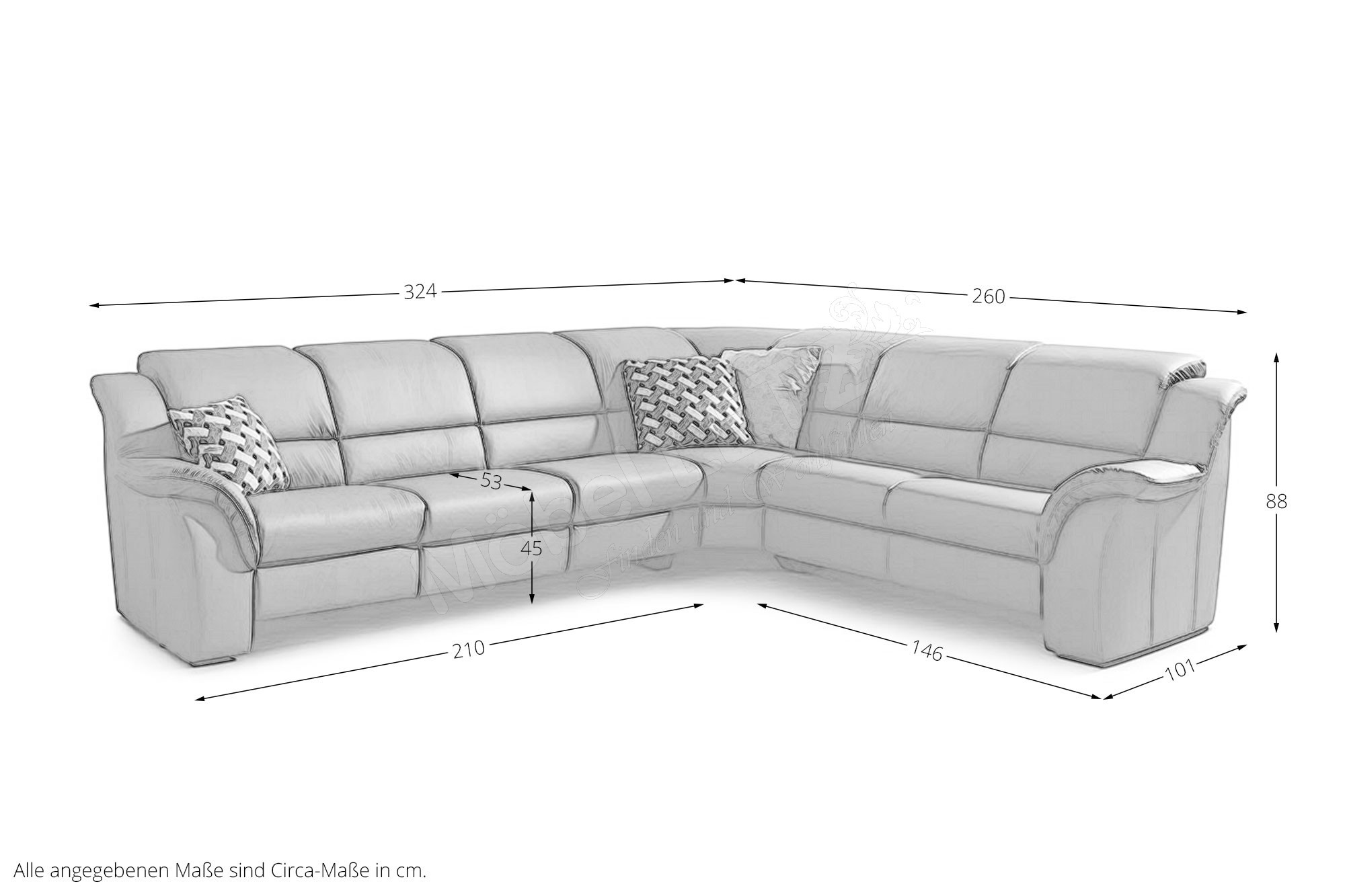 - 1 x 5040 - Winkelecke, ca. BHT: 114/88/114 cm