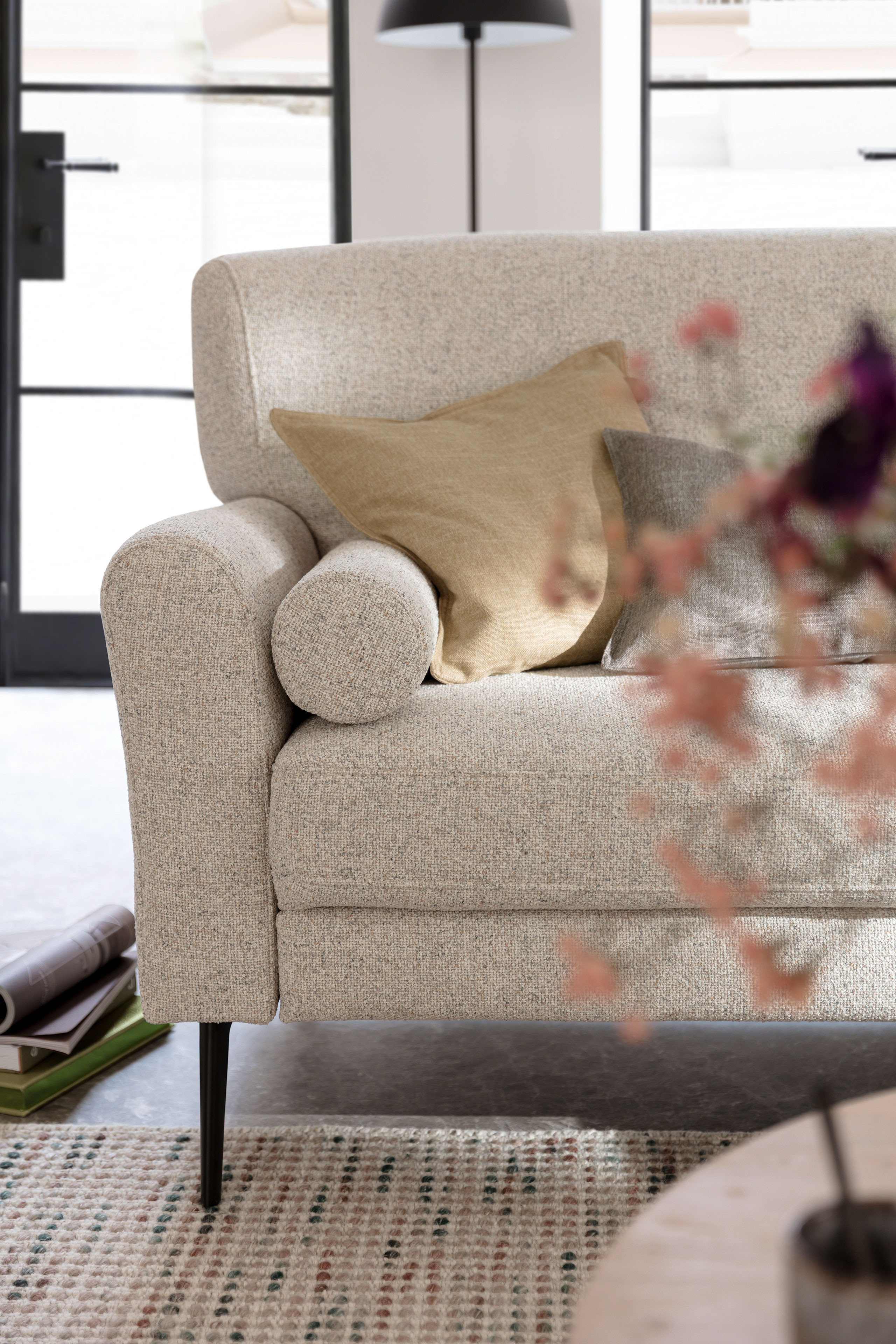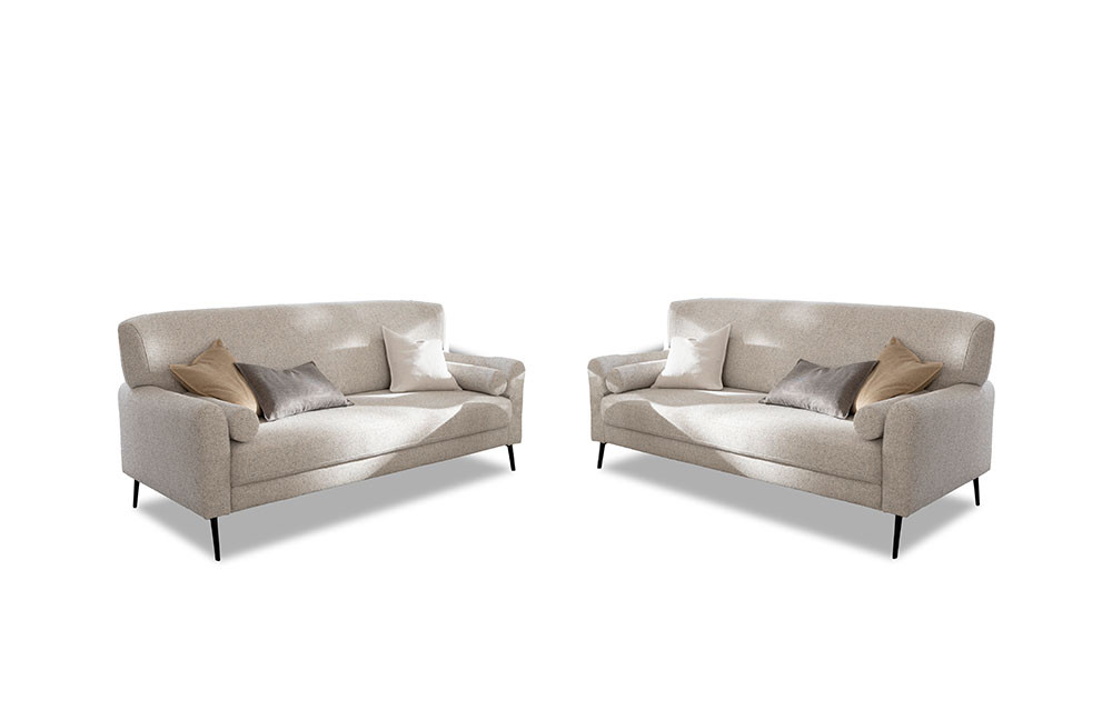 Dieses stilvolle Polster-Duo namens Amadeo von SCHÖNER WOHNEN verkörpert ein Wohngefühl, das Ruhe sowie Entspannung mühelos miteinander vereint. Die beiden harmonisch aufeinander abgestimmten 3-Sitzer schaffen eine einladende Atmosphäre, in der man sofort ankommen und aufatmen möchte. Der sanft strukturierte Flachgewebebezug in Beige verleiht ihrem Wohnzimmer eine natürliche Leichtigkeit und sorgt gleichzeitig für eine elegante, zeitlose Optik. Dank der schlanken Metallfüße in Schwarz wirkt das Design modern sowie luftig - perfekt für alle, die Wert auf ein Interieur legen, das sowohl zurückhaltend als auch charakterstark ist. Die großzügigen gepolsterten Armlehnen sowie die feinen, dezenten Rundungen der Rückenlehne laden zu entspannten Stunden ein, sei es mit einem romantischen Buche, einem heißen Kakao oder bei einem gemütlichen Abend mit der Familie. In Kombination mit den angebotenen Kissenrollen entsteht ein Wohnbereich, der Geborgenheit vermittelt, ohne jemals überladen zu wirken. Aber nicht nur das Aussehen des Amadeo Sofa-Sets begeistert, auch die hochwertige Polsterung aus PUR-Schaum auf Wellenfedern lädt zu Träumen ein. Zudem haben Sie die Möglichkeit, beide Sofas mit einem Vorziehsitz auszustatten, wodurch Sie die Sitzfläche dank eines E-Motors um ca. 20 cm vorziehen können, um bei Bedarf eine gemütlichere Sitzposition einzunehmen. Ihnen gefallen die Metallfüße nicht? Auch dies ist kein Problem, da Sie in unseren Zusatzoptionen auch die Wahl haben sich für zeitlose Holz-Metallfüße zu entscheiden. Amadeo von SCHÖNER WOHNEN ist die ideale Wahl für alle, die sich ein stilvolles, modernes Ambiente wünschen, welches gleichzeitig Wärme sowie Eleganz ausstrahlt. Machen Sie Ihr Wohnzimmer zu einem Ort, an dem man gerne verweilt - Tag für Tag.