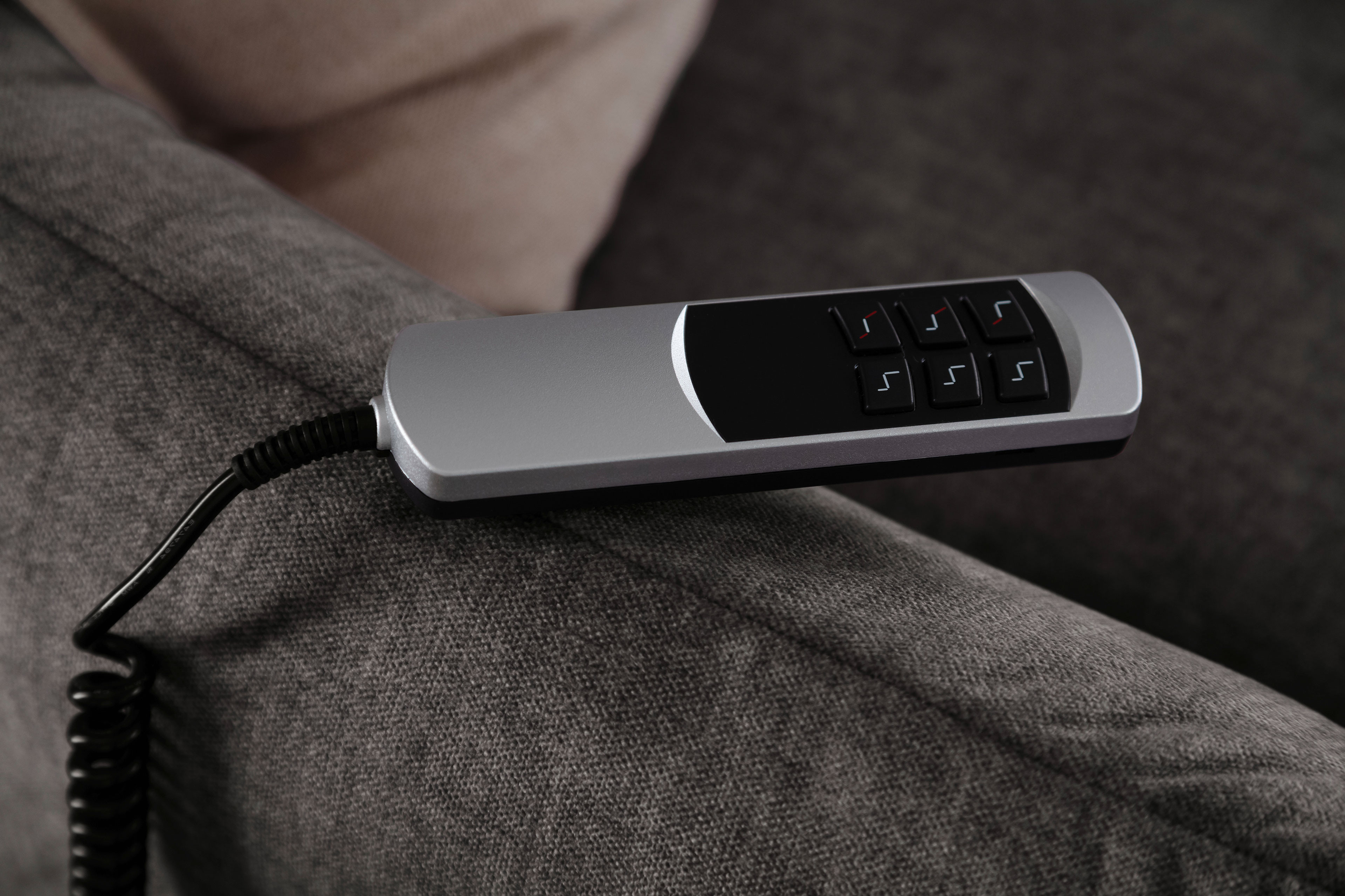 Verstellung von Rücken und Fußteil, von der Sitz- zur TV-Liegeposition durch einen E-Motor über das innenliegende Bedienfeld (am Sitz seitlich liegend).