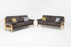 Der Traditionshersteller Schröno steht für handgefertigte Polstermöbel Made in Germany und vereint edle Materialien, ergonomische Komforteigenschaften sowie Nachhaltigkeit zu einzigartigen Qualitätsmöbelstücken mit Wiedererkennungscharakter. Eines von vielen hochwertigen Modellen ist das Modell Catania, welches sich in unserem Angebot aus einem 2-Sitzer mit einer Breite von etwa 168 cm sowie einem 208 cm breiten 3-Sitzer zusammensetzt und mit einem optionalen Sessel zu einer harmonischen Polstergruppe komplettiert werden kann. Die anmutige Optik wird erzielt durch das Zusammenspiel aus einem Microfasergewand im Farbton Braun sowie dem Gestell aus massiver Buche, wodurch die Polstergarnitur gleichzeitig einen Touch Natürlichkeit erhält und dank der Farbgebung in große, lichtdurchflutete Räume oder einen modernen Lebensstil bestens integriert werden kann. Für ein besonders angenehmes Sitzempfinden wurde Catania mit losen Sitz- sowie Rückenkissen aus Kaltschaum, verstärkt mit einer elastischen Gummigurtunterfederung, ausgestattet und schenkt Ihnen somit einzigartige Wohlfühlmomente mit Verweilgarantie. Gönnen Sie sich entspannte Nachmittage mit einem Buch und einem leckeren Cappuccino oder schwelgen Sie gemeinsam mit Freunden in Erinnerungen - genießen Sie die viel zu seltenen Augenblicke voller Glückseligkeit. Sie sind begeistert von dem Design der Schröno Ledergarnitur, wünschen sich jedoch lieber eine andere Zusammenstellung oder ein alternatives Outfit? Dann stöbern Sie in Ruhe durch die facettenreiche Bezugskollektion des Herstellers unter "Farbe ändern" oder nutzen Sie die Möglichkeit unter "Artikel frei planen", um Ihre persönliche Traumgarnitur zu kreieren. Auch unsere freundlichen Einrichtungsexperten stehen Ihnen per Telefon, E-Mail oder Live-Chat gern beratend zur Seite, damit auch Sie schon bald ein Möbelstück aus dem Hause Schröno Ihr Eigen nennen können.
