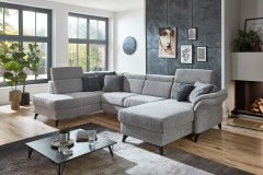 Durchatmen und ausspannen - ein Vorhaben, welches Ihnen mit der Wohnlandschaft Arngast KV von Sit & More garantiert gelingt. Genügend Platz zum Kuscheln und Relaxen stellt es mit einem Stellmaß von etwa 193 x 318 x 165 cm, bestehend aus einer Ottomane, einem 2,5-Sitzer Zwischenelement sowie einem Longchair, zur Verfügung. Schnappen Sie sich eine Kuscheldecke, dazu Ihre Lieblingslektüre, schmiegen Sie sich an die gut gepolsterte Rückenlehne und lassen Sie bei gemütlichem Kerzenschein, dazu ein Glas vollmundigen Rotweines, Ihren Tag ganz entspannt ausklingen. Um Ihrem Kopf- und Nackenbereich eine ebenso fantastische Entspannung zu gönnen ist das Sofa bereits mit einer manuellen Kopfteilverstellung ausgestattet. Richten Sie sich alles so her, wie es für Sie am bequemsten ist, und genehmigen Sie sich eine Verschnaufpause. Um hierbei den Gemütlichkeitsfaktor zu erhöhen, ist in den Zusatzoptionen eine Schlaffunktion wählbar. Dank dieser lässt sich im Handumdrehen eine Kuschelwiese, mit einer Liegefläche von ca. 251 x 117 cm, hervorzaubern. Weiterhin haben Sie die Möglichkeit, die Ottomane mit einem funktionalen Bettkasten, in dem sich Decken, Kissen und andere nicht benötigte Dinge verstauen lassen, auszustatten. Stöbern Sie auch in unserer facettenreichen Bezugsübersicht, in der verschiedene Farben sowie Stoffe zur Auswahl stehen, und kreieren Sie sich Ihr perfektes Sitzmöbel. Mit der eleganten Garnitur Arngast KV aus dem Hause Sit & More sind Sie immer mit dem besten Komfort, dank hochwertigem PUR-Schaum ruhend auf einem superbequemen Federkern, sowie reichlich Sitzmöglichkeiten ausgestattet und so in der Lage Ihren Gästen stets einen traumhaften Platz zum Wohlfühlen anzubieten.