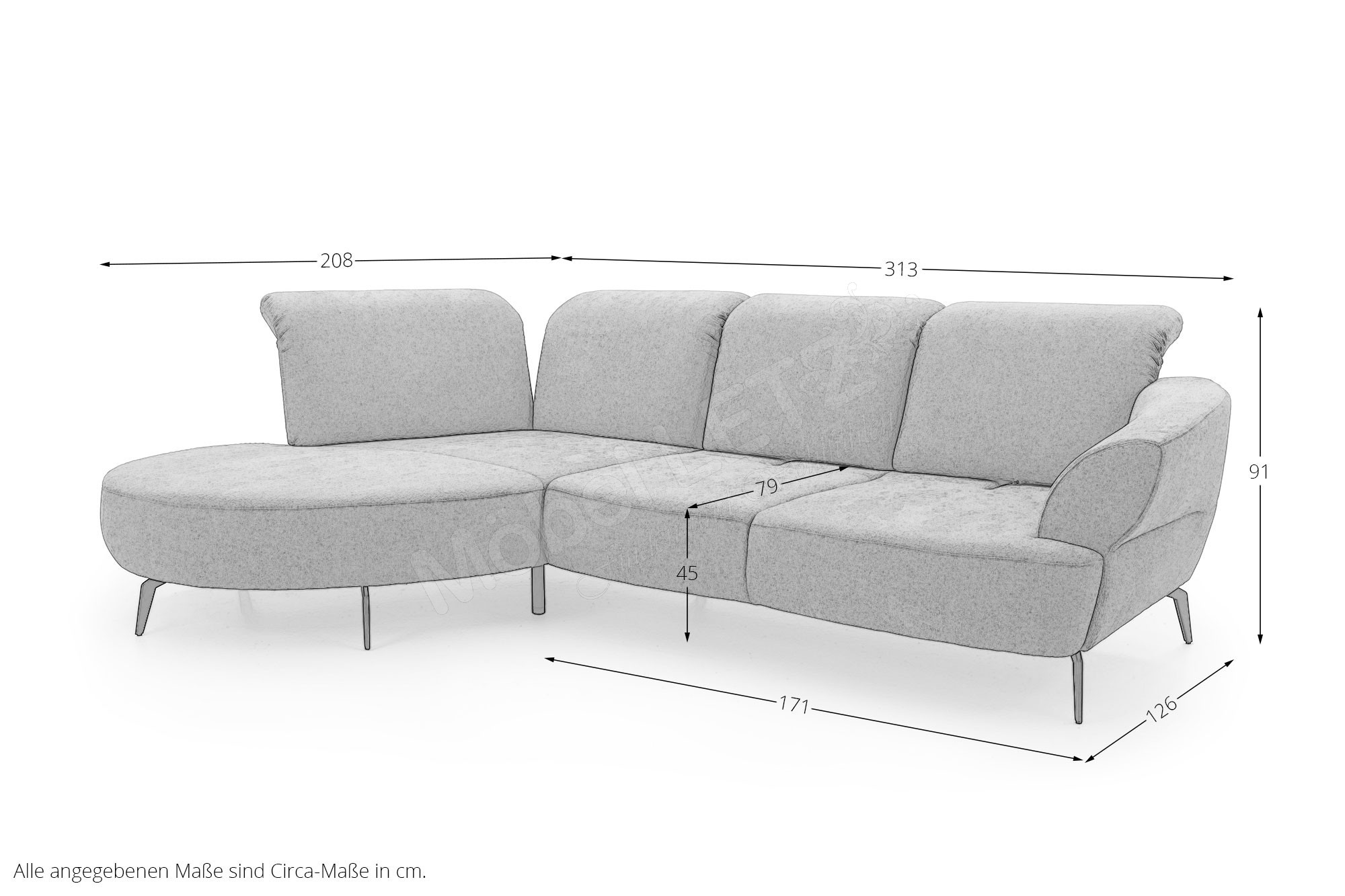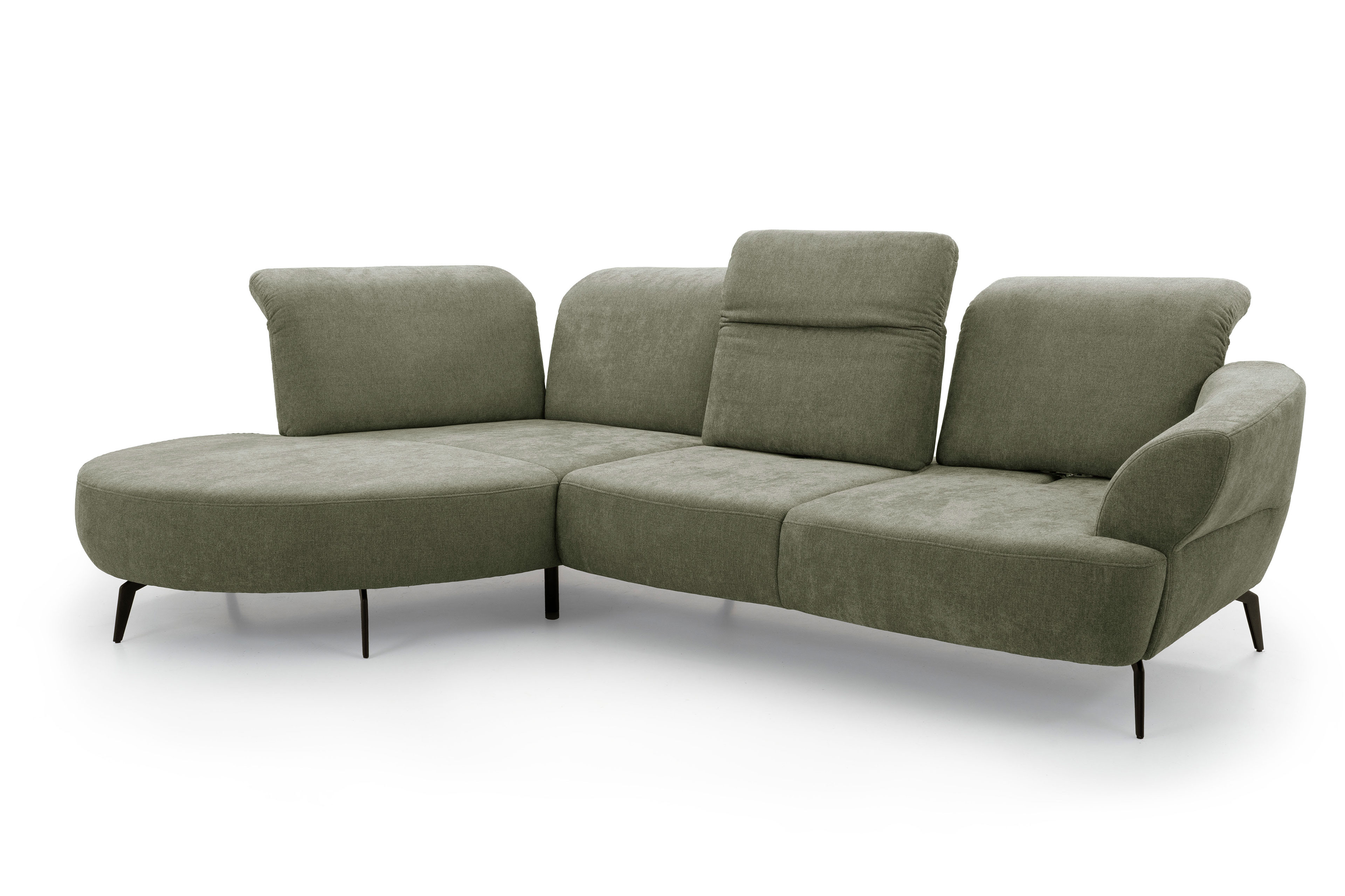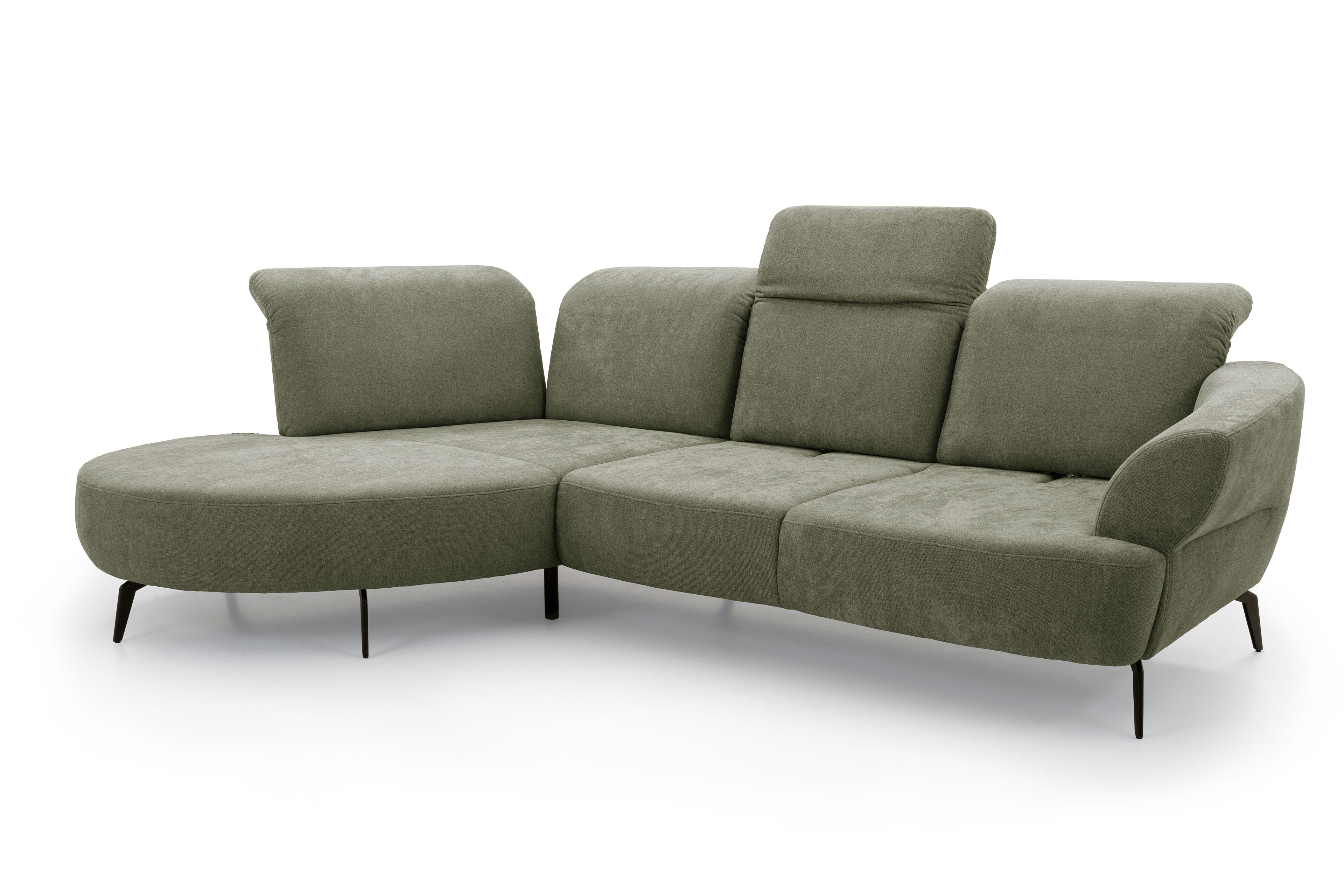 Diese elegante Eckgarnitur namens Dance verbindet modernes Design mit höchstem Sitzkomfort und fügt sich mühelos in jedes Wohnzimmer ein - ob in einem großzügigen Wohnbereich, in einer gemütlichen Stadtwohnung oder in einem offenen Loft-Grundriss. Durch seine klaren Linien sowie die weich abgerundeten Formen wirkt das Sofa zeitlos und zugleich einladend. Besonders vielseitig zeigt sich die Farbgebung des Sit & More Möbelstücks. Dank einer breiten Auswahl an Bezügen sowie Nuancen lässt sich das Modell perfekt an Ihren persönlichen Einrichtungsstil anpassen - von dezent und neutral bis hin zu warmen, ausdrucksstarken Tönen. Ein besonderes Highlight ist die individuelle Funktionalität. Sowohl die Ottomane als auch der 2-Sitzer können mit einer praktischen Kopfteilverstellung ausgestattet werden, die zusätzliche Entspannung ermöglicht - ideal für gemütliche Fernsehabende oder entspanntes Lesen. Der 2-Sitzer lässt sich darüber hinaus mit einer Sitztiefenverstellung konfigurieren, sodass Sie Ihre bevorzugte Sitzposition ganz nach Wunsch variieren können. Für noch mehr Komfort und Gestaltungsspielraum ist das Sit & More Sofa optional mit einem passenden Hocker sowie den gezeigten Kissen erhältlich. Beide Elemente fügen sich harmonisch in das Gesamtbild ein und erweitern die Nutzungsmöglichkeiten - ob als zusätzliche Sitzfläche, Fußablage oder dekoratives Detail. Über unsere vielseitige Konfiguration können Sie zudem weitere Elemente flexibel dazubuchen oder bestehende Module austauschen. So entsteht ein Sofa, welches nicht nur optisch überzeugt, sondern sich auch in Form, Größe und Funktion perfekt an Ihre Wohnsituation anpasst. Dance von Sit & More ein Möbelstück, das Stil, Komfort und Individualität in Ihrem Zuhause miteinander vereint.