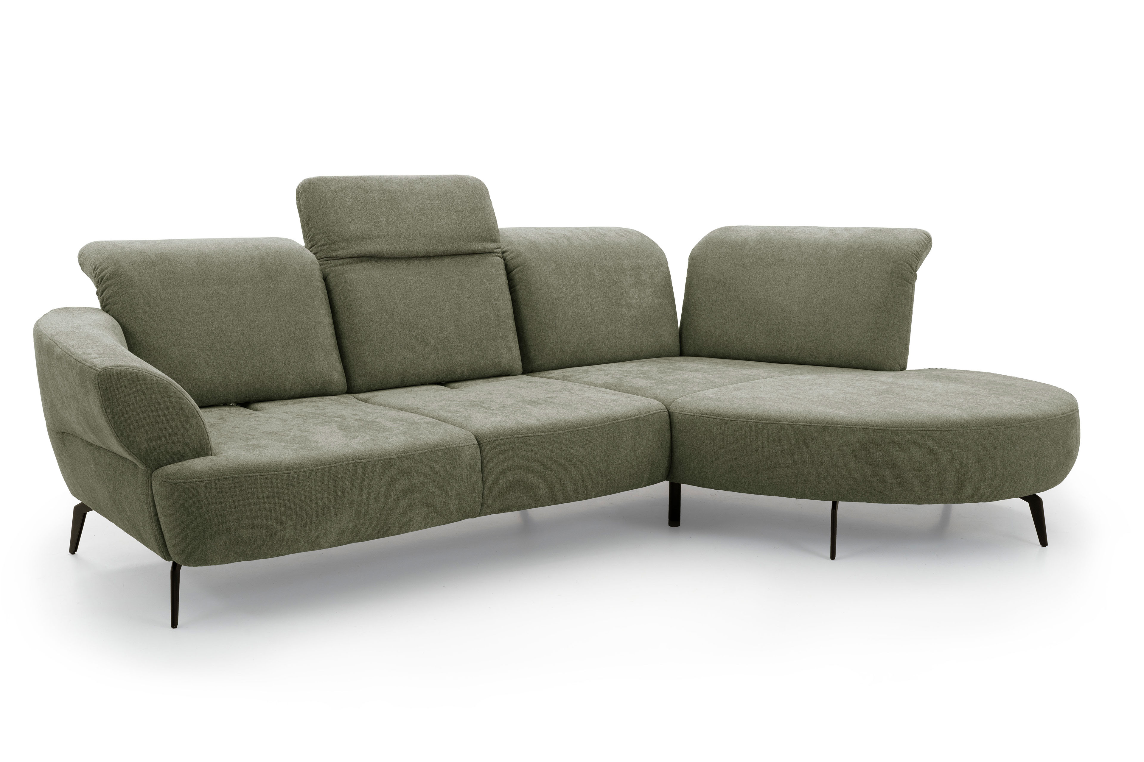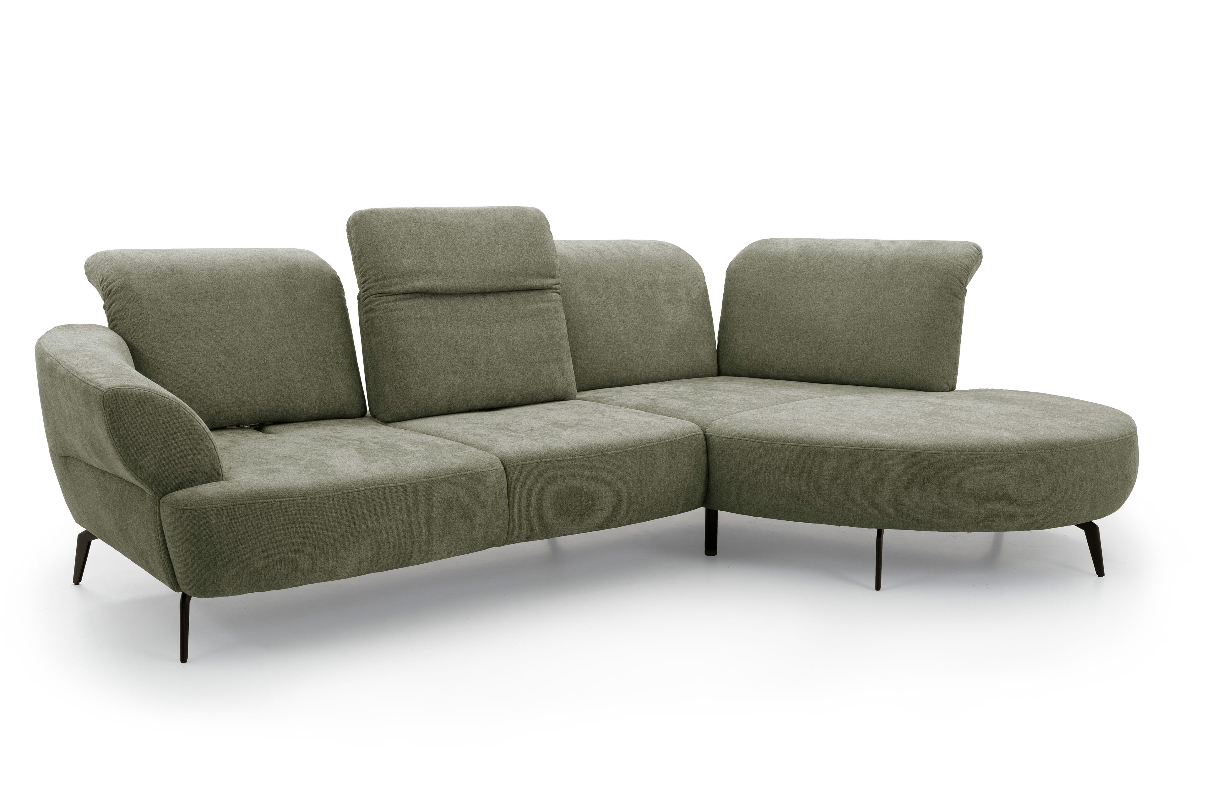 Diese elegante Eckgarnitur namens Dance verbindet modernes Design mit höchstem Sitzkomfort und fügt sich mühelos in jedes Wohnzimmer ein - ob in einem großzügigen Wohnbereich, in einer gemütlichen Stadtwohnung oder in einem offenen Loft-Grundriss. Durch seine klaren Linien sowie die weich abgerundeten Formen wirkt das Sofa zeitlos und zugleich einladend. Besonders vielseitig zeigt sich die Farbgebung des Sit & More Möbelstücks. Dank einer breiten Auswahl an Bezügen sowie Nuancen lässt sich das Modell perfekt an Ihren persönlichen Einrichtungsstil anpassen - von dezent und neutral bis hin zu warmen, ausdrucksstarken Tönen. Ein besonderes Highlight ist die individuelle Funktionalität. Sowohl der 2-Sitzer als auch die Ottomane können mit einer praktischen Kopfteilverstellung ausgestattet werden, die zusätzliche Entspannung ermöglicht - ideal für gemütliche Fernsehabende oder entspanntes Lesen. Der 2-Sitzer lässt sich darüber hinaus mit einer Sitztiefenverstellung konfigurieren, sodass Sie Ihre bevorzugte Sitzposition ganz nach Wunsch variieren können. Für noch mehr Komfort und Gestaltungsspielraum ist das Sit & More Sofa optional mit einem passenden Hocker sowie den gezeigten Kissen erhältlich. Beide Elemente fügen sich harmonisch in das Gesamtbild ein und erweitern die Nutzungsmöglichkeiten - ob als zusätzliche Sitzfläche, Fußablage oder dekoratives Detail. Über unsere vielseitige Konfiguration können Sie zudem weitere Elemente flexibel dazubuchen oder bestehende Module austauschen. So entsteht ein Sofa, welches nicht nur optisch überzeugt, sondern sich auch in Form, Größe und Funktion perfekt an Ihre Wohnsituation anpasst. Dance von Sit & More ein Möbelstück, das Stil, Komfort und Individualität in Ihrem Zuhause miteinander vereint.