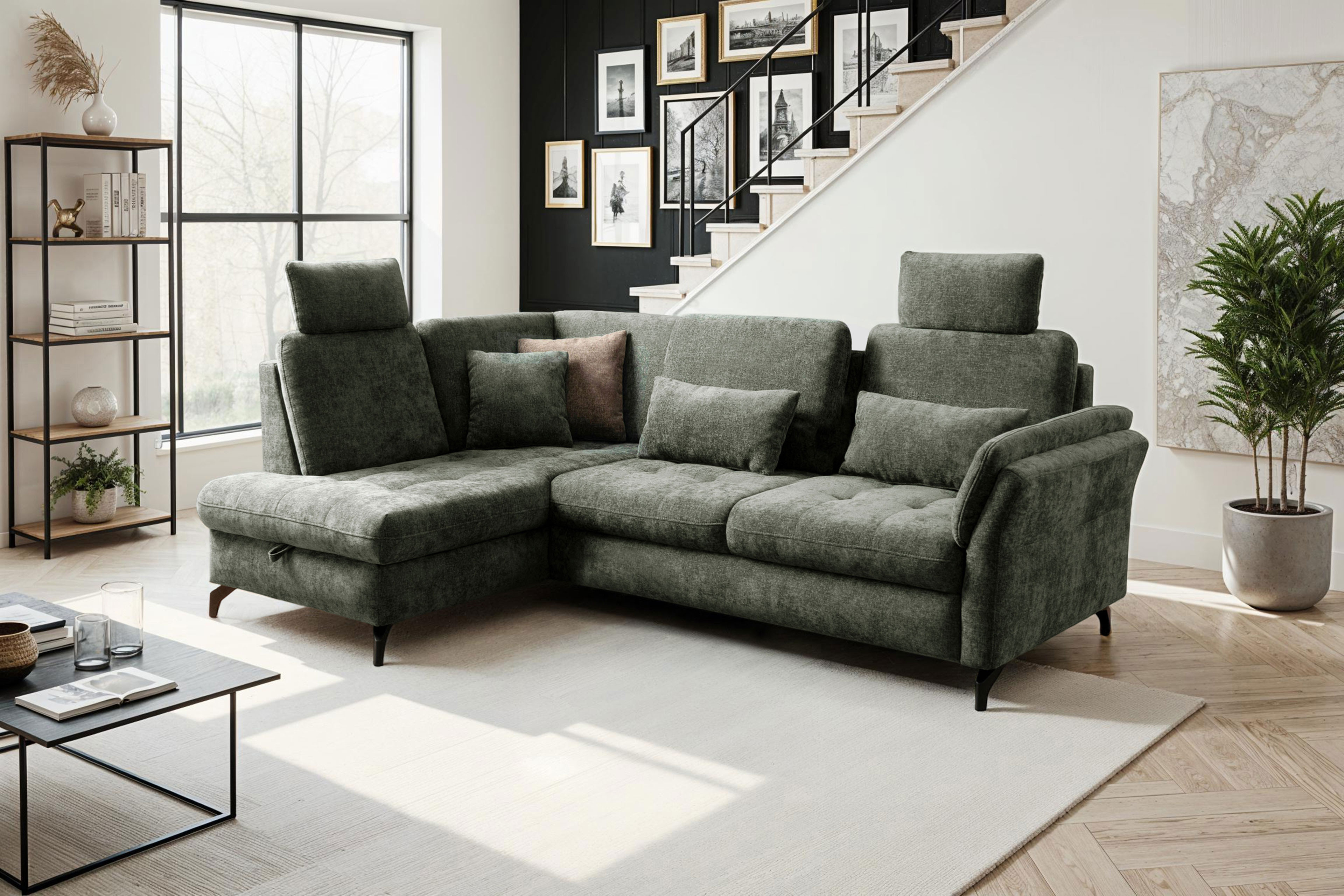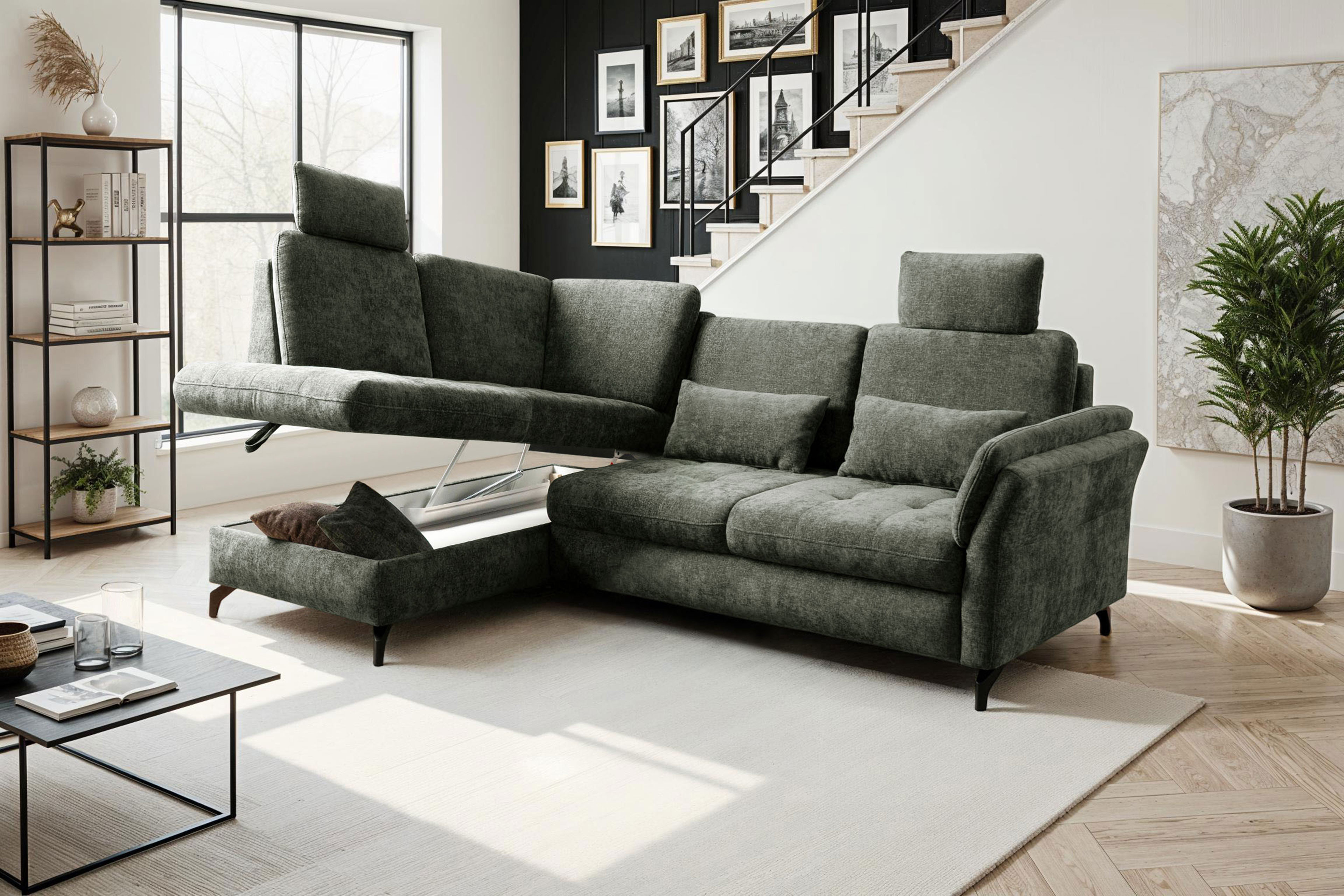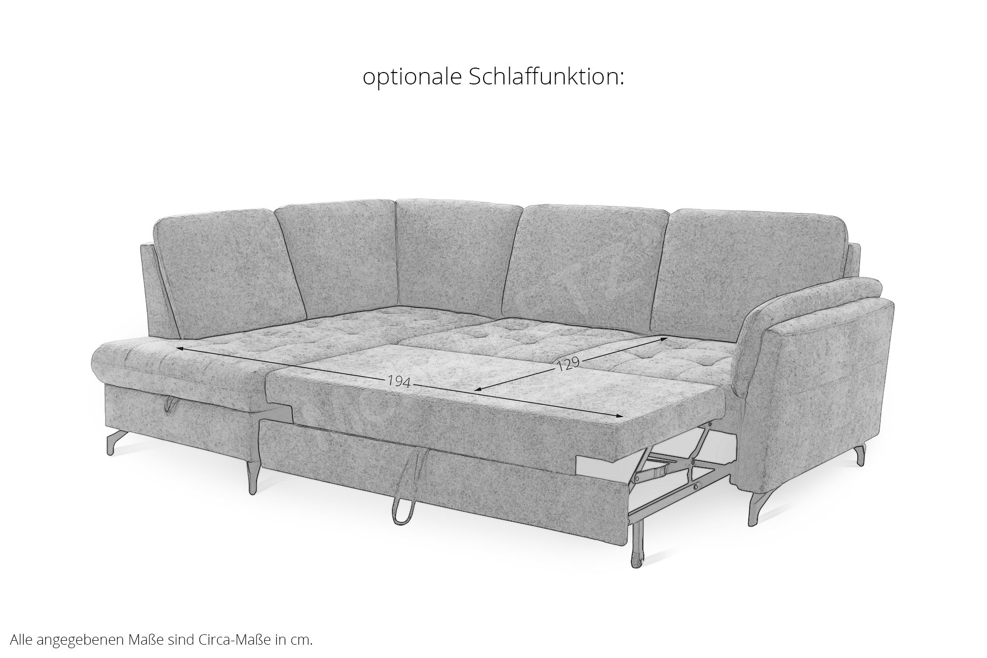 Wenn ein Möbelstück mehr als ein Platz zum Sitzen ist, dann ist es das Sofa Luana von Sit & More. Ein Ort, an dem lange Tage ausklingen können, Gespräche wachsen und Momente bleiben. Dieses stilvolle Ecksofa verbindet hochwertige Verarbeitung mit durchdachtem Design und wird so zum Herzstück jedes Wohnraums. Die luxuriöse Polsterung aus PUR-Schaum auf einer langlebigen Wellenunterfederung schenkt Ihnen ein angenehm weiches, gleichzeitig stützendes Sitzgefühl, das selbst lange Abende mühelos angenehm macht. Ein besonderes Plus ist die integrierte Sitztiefenverstellung von etwa 15 cm, wodurch Sie je nach Belieben Ihre Sitzposition verändern können. Im Grundmodell ruht das Sofa auf eleganten, matt schwarzen Metallfüßen, die ihm eine moderne und leichte Note verleihen. Wer es natürlicher mag, kann es auf Wunsch mit warmen Holzfüßen ausstatten und so eine harmonische Wohnatmosphäre schaffen. Die Kombination aus einer einladenden Ottomane und einem großzügigen 2,5-Sitzer mit einem Stellmaß von circa 172 x 253 cm bietet ausreichend Platz zum Ausstrecken, Wohlfühlen und Zusammensein. Der echt gezogene Rücken ermöglicht eine freie Platzierung im Raum - perfekt für Wohnbereiche mit offener Küche oder Essbereich. Ganz individuell wird das Sofa durch optionale Kopfstützen, eine Armlehnenverstellung sowie weitere Komfortfunktionen, die Sie zum Beispiel in unserem Polsterplaner finden. Abgerundet wird das Sit & More Polstersofa durch eine große Palette an modernen sowie dezenten Bezugsstoffen, mit denen Sie Ihr neues Sofa perfekt auf Ihren Stil abstimmen können. Luana - ein Sofa, das nicht nur gut aussieht, sondern sich auch so anfühlt und jeden Tag ein kleines Stück Zuhause schenkt.