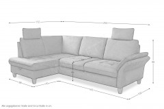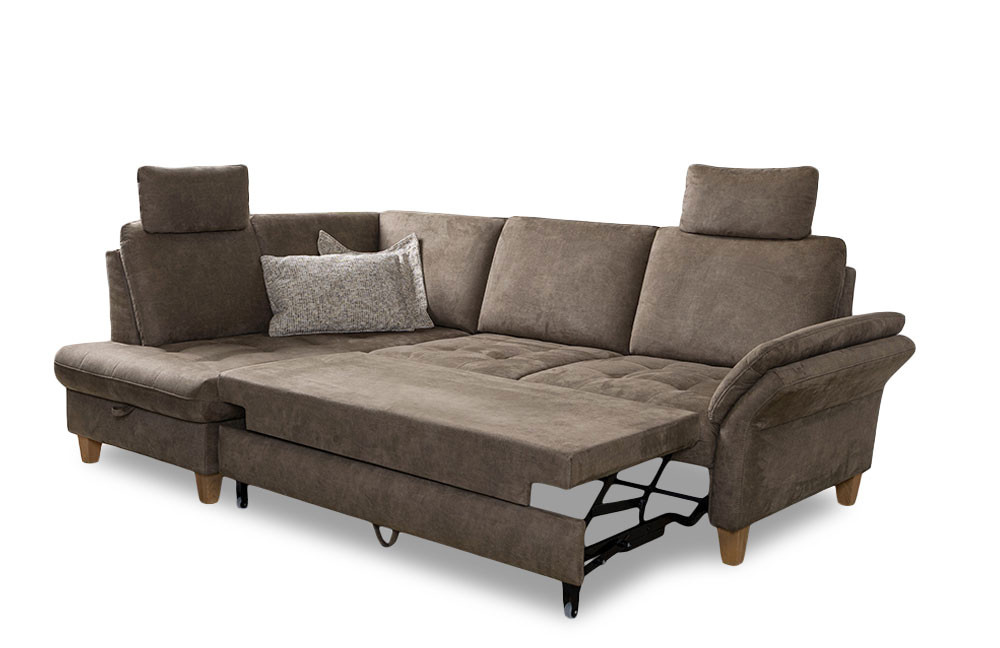 Wenn ein Möbelstück mehr als ein Platz zum Sitzen ist, dann ist es das Sofa Luana von Sit & More. Ein Ort, an dem lange Tage ausklingen können, Gespräche wachsen und Momente bleiben. Dieses stilvolle Ecksofa verbindet hochwertige Verarbeitung mit durchdachtem Design und wird so zum Herzstück jedes Wohnraums. Die luxuriöse Polsterung aus PUR-Schaum auf einer langlebigen Wellenunterfederung schenkt Ihnen ein angenehm weiches, gleichzeitig stützendes Sitzgefühl, das selbst lange Abende mühelos angenehm macht. Ein besonderes Plus ist die integrierte Sitztiefenverstellung von etwa 15 cm, wodurch Sie je nach Belieben Ihre Sitzposition verändern können. Im Grundmodell ruht das Sofa auf eleganten, Holzfüßen in Eiche geölt, die ihm eine natürliche und leichte Note verleihen. Wer es moderner mag, kann es auf Wunsch mit zeitlosen Metallfüßen ausstatten und so eine harmonische Wohnatmosphäre schaffen. Die Kombination aus einer einladenden Ottomane und einem großzügigen 2,5-Sitzer mit einem Stellmaß von circa 172 x 253 cm bietet ausreichend Platz zum Ausstrecken, Wohlfühlen und Zusammensein. Der echt gezogene Rücken ermöglicht eine freie Platzierung im Raum - perfekt für Wohnbereiche mit offener Küche oder Essbereich. Ganz individuell wird das Sofa durch optionale Kopfstützen, eine Armlehnenverstellung sowie weitere Komfortfunktionen, die Sie zum Beispiel in unserem Polsterplaner finden. Abgerundet wird das Sit & More Polstersofa durch eine große Palette an modernen sowie dezenten Bezugsstoffen, mit denen Sie Ihr neues Sofa perfekt auf Ihren Stil abstimmen können. Luana - ein Sofa, das nicht nur gut aussieht, sondern sich auch so anfühlt und jeden Tag ein kleines Stück Zuhause schenkt.