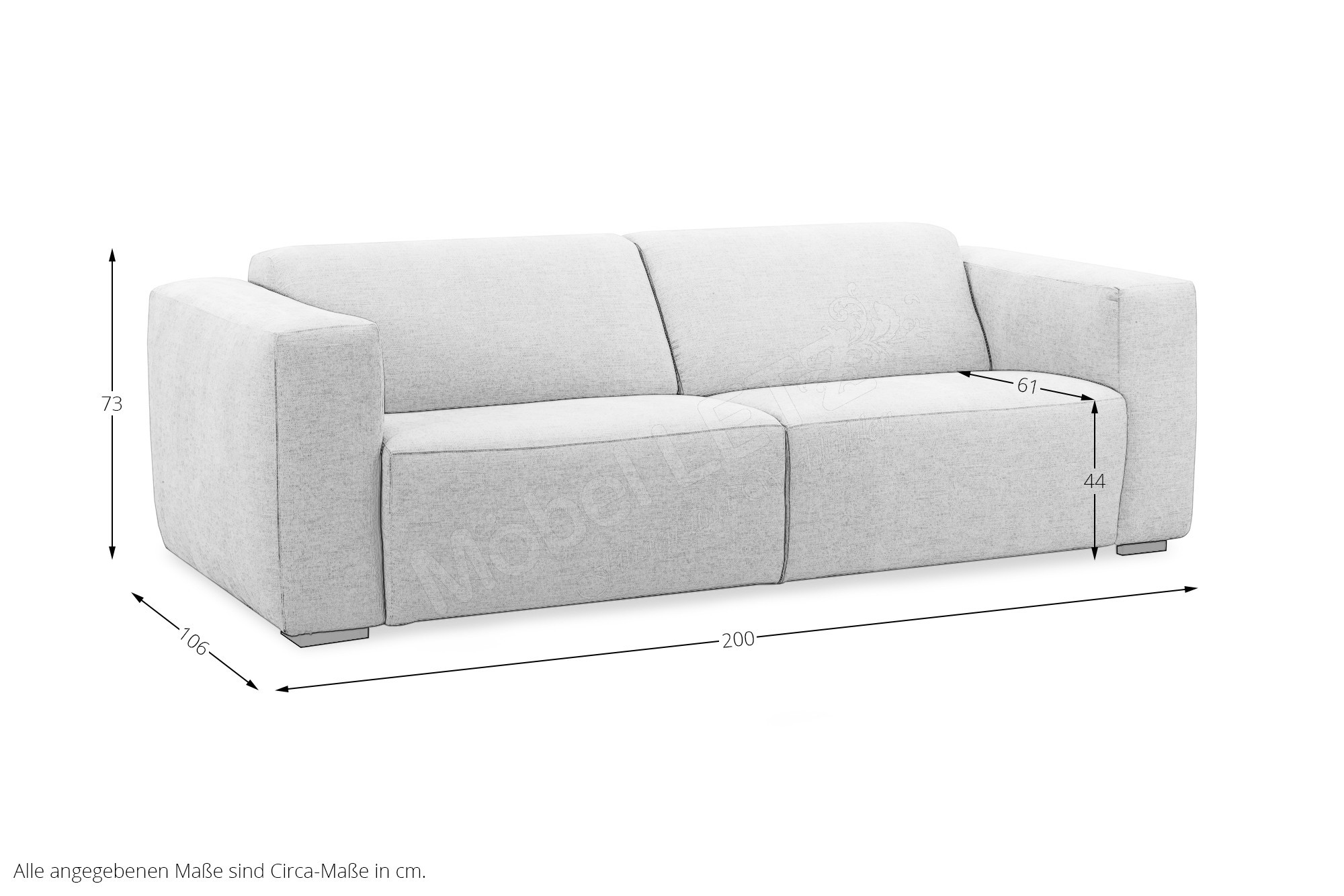 Wunderschöne Leichtigkeit gepaart mit stilvollen Materialien: Der Hersteller Vilmers hat mit dem Modell Gardenia eine elegante Ruheinsel kreiert, die Ihnen das Gefühl vermittelt, angekommen zu sein. Das Sofa wird schnell zum gemütlichen Paradies in Ihren vier Wänden, wo Sie vollends entspannen und den Alltag hinter sich lassen können. Das Bezugskleid aus einem beigen Chenille-Flachgewebe trägt maßgeblich zum modernen Design der Garnitur bei und sorgt, in Verbindung mit einem hochwertigen HR-Weichschaum im Inneren, für einen fabelhaften Sitzkomfort, den Sie ab dem ersten Platznehmen nicht mehr missen werden wollen. Die flachen Holzfüße in Schwarz, auf denen das Sofa sicher steht, komplettieren das Gesamtbild und verleihen Ihrem Wohnraum eine zeitgemäße Eleganz. Auf einer Breite von etwa 200 cm sowie einer Sitztiefe von ca. 61 cm können Sie hier behaglich im Sitzen beim Genießen einer Tasse Kaffee oder im Liegen beim Fernsehen relaxen. Sollte der helle Farbton nicht ganz Ihren Vorstellungen entsprechen, können Sie sich unter dem Punkt "Wunschbezug - Farbe ändern" für eine andere Stoffqualität oder Farbnuance entscheiden, damit sich Ihre neue Sitzgelegenheit harmonisch in Ihr vorhandenes Interieur einfügt. Gardenia aus dem Hause Vilmers - ein hinreißender Rückzugsort im skandinavischen Einrichtungsstil.
