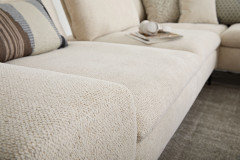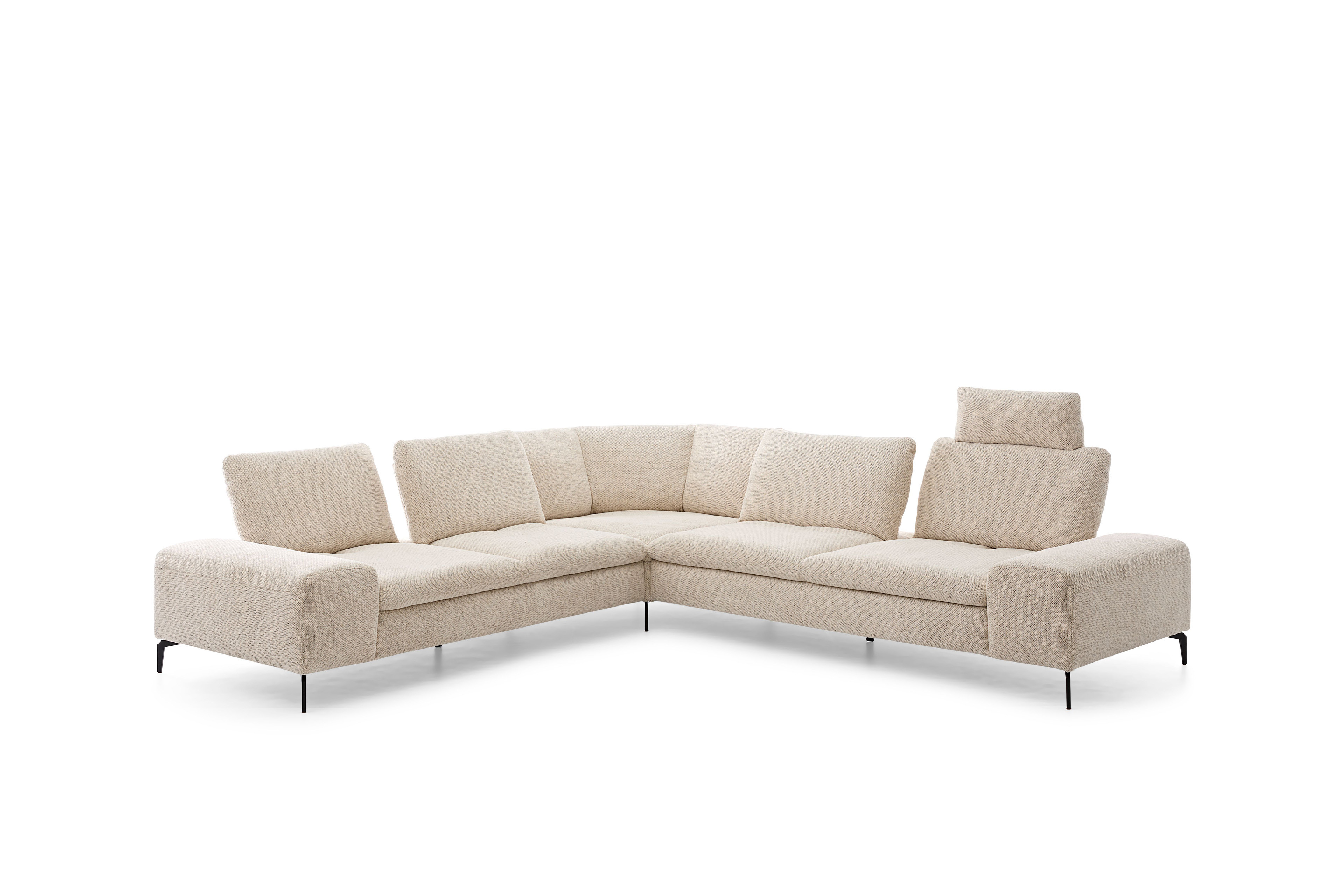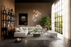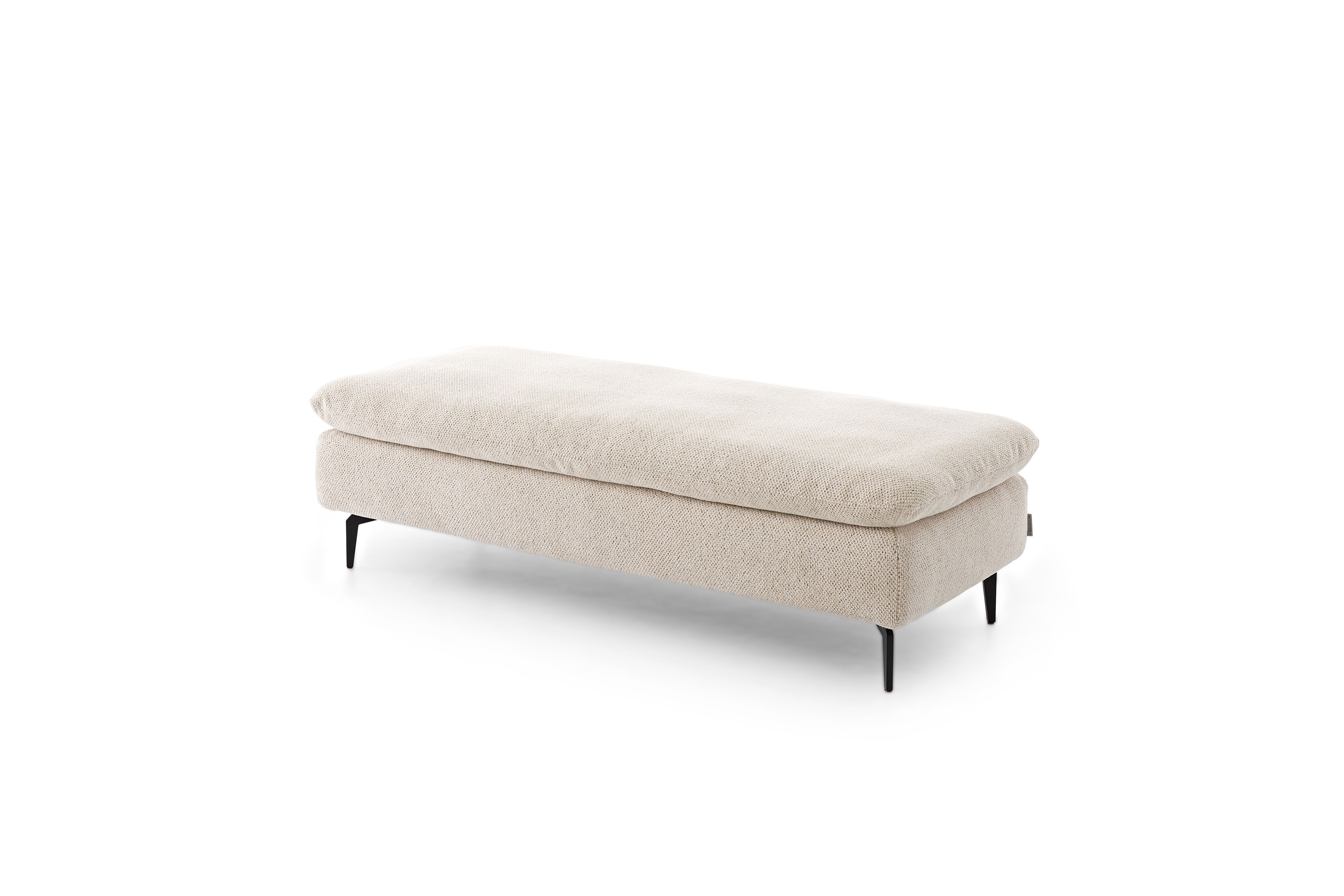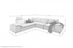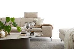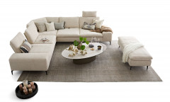 Im stilvollen Chenille-Flachgewebe-Bezug in Creme präsentiert sich 16540 Valentinoo aus dem Hause Willi Schillig in der ca. 298 x 318 cm großen Eckvariante und bietet mit dem stattlichen Stellmaß viel Platz für Sie sowie Ihre Liebsten, aber auch bei einer geselligen Runde mit Freunden hält das Modell ein gemütliches Plätzchen für jedermann parat. Die Kombination aus einem etwas kleineren 2-Sitzer, einer Spitzecke und einem großen 2-Sitzer lässt sich in der Ausführung links sowie spiegelverkehrt in der Ausführung rechts bestellen und mit unseren Zusatzoptionen zu einer wahren Wohlfühlinsel gestalten. Neben einer bereits integrierten Sitztiefenverstellung in den beiden 2-sitzigen Elementen, mit welcher sich der Rücken pro Sitz um einige Zentimeter nach hinten versetzen lässt, besteht für Sie die Möglichkeit, einen passenden Hocker sowie Kopfstützen in beliebiger Anzahl zu wählen. Ob nach einem stressigen Arbeitstag, in den freien Momenten am Wochenende oder einfach nur zwischendurch - mit hochgelegten Beinen lässt es sich herrlich entspannen und auch mal gern die Zeit vergessen. Für eine individuelle Gestaltung ganz nach Ihren Vorstellungen sowie Wünschen stellt der Hersteller einen Metallfuß in verschiedenen Ausführungen, welchen Sie ebenfalls über die Zusatzoptionen wählen können, eine Vielzahl schöner Stoff- und Lederqualitäten in den unterschiedlichsten Farben sowie weitere Elemente für andere Kombinationen zur Verfügung. Nutzen Sie unseren Polsterplaner oder kontaktieren Sie unsere freundlichen Einrichtungs-Experten, die Ihnen bei der Planung Ihrer neuen Polstergarnitur sehr gern behilflich sind. 16540 Valentinoo von Willi Schillig - hier kommen Genießer voll auf ihre Kosten.