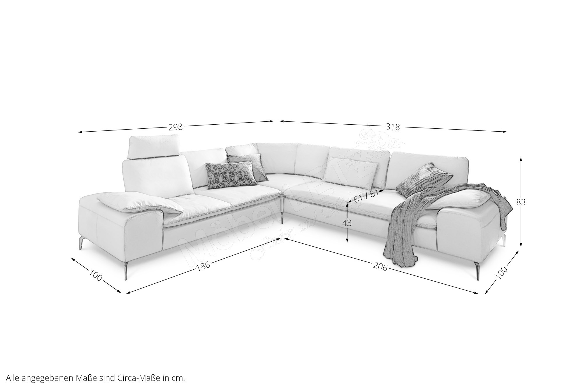 -Angebot ohne Deko, Kopfstütze, Hocker, Kissen & Beimöbel-