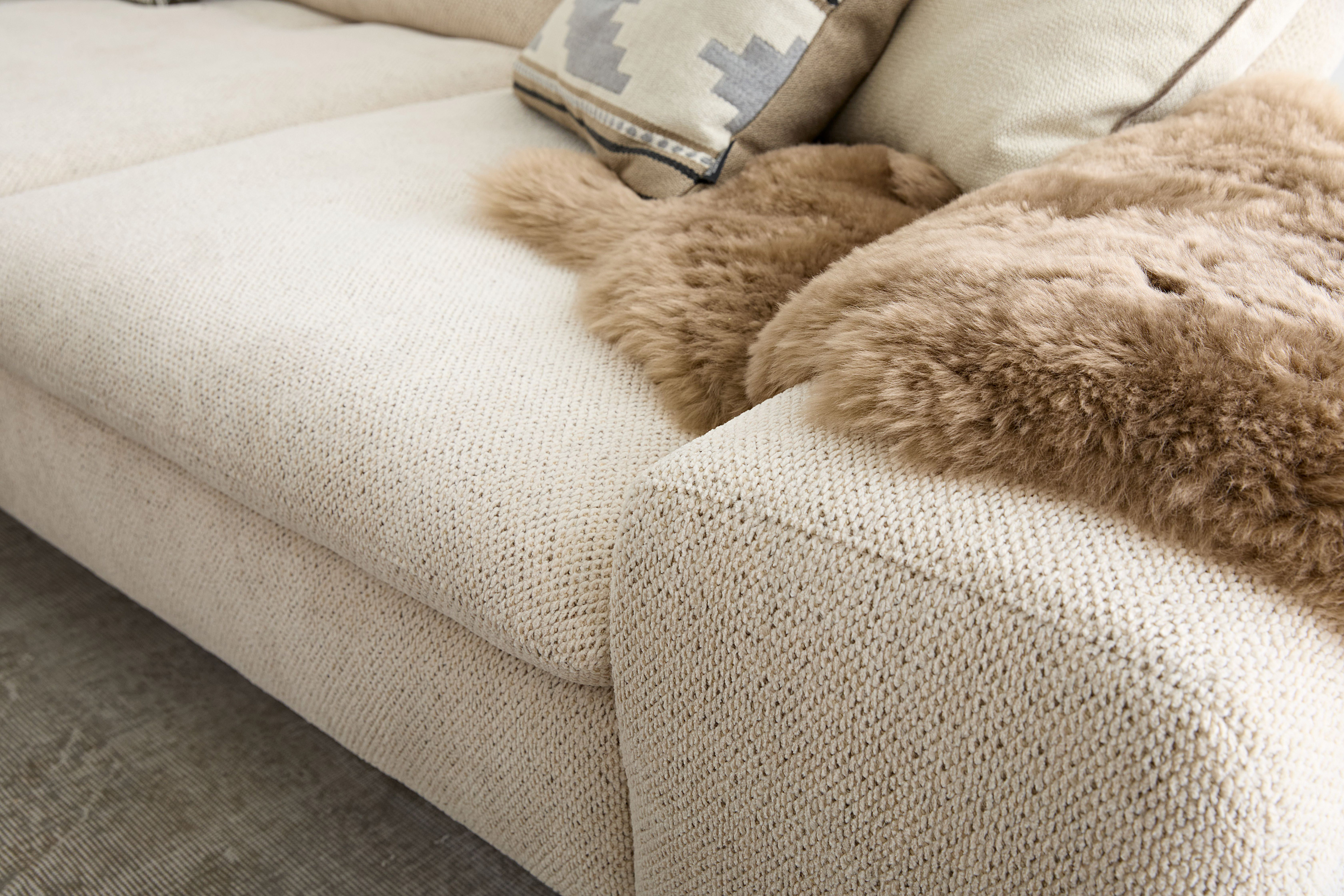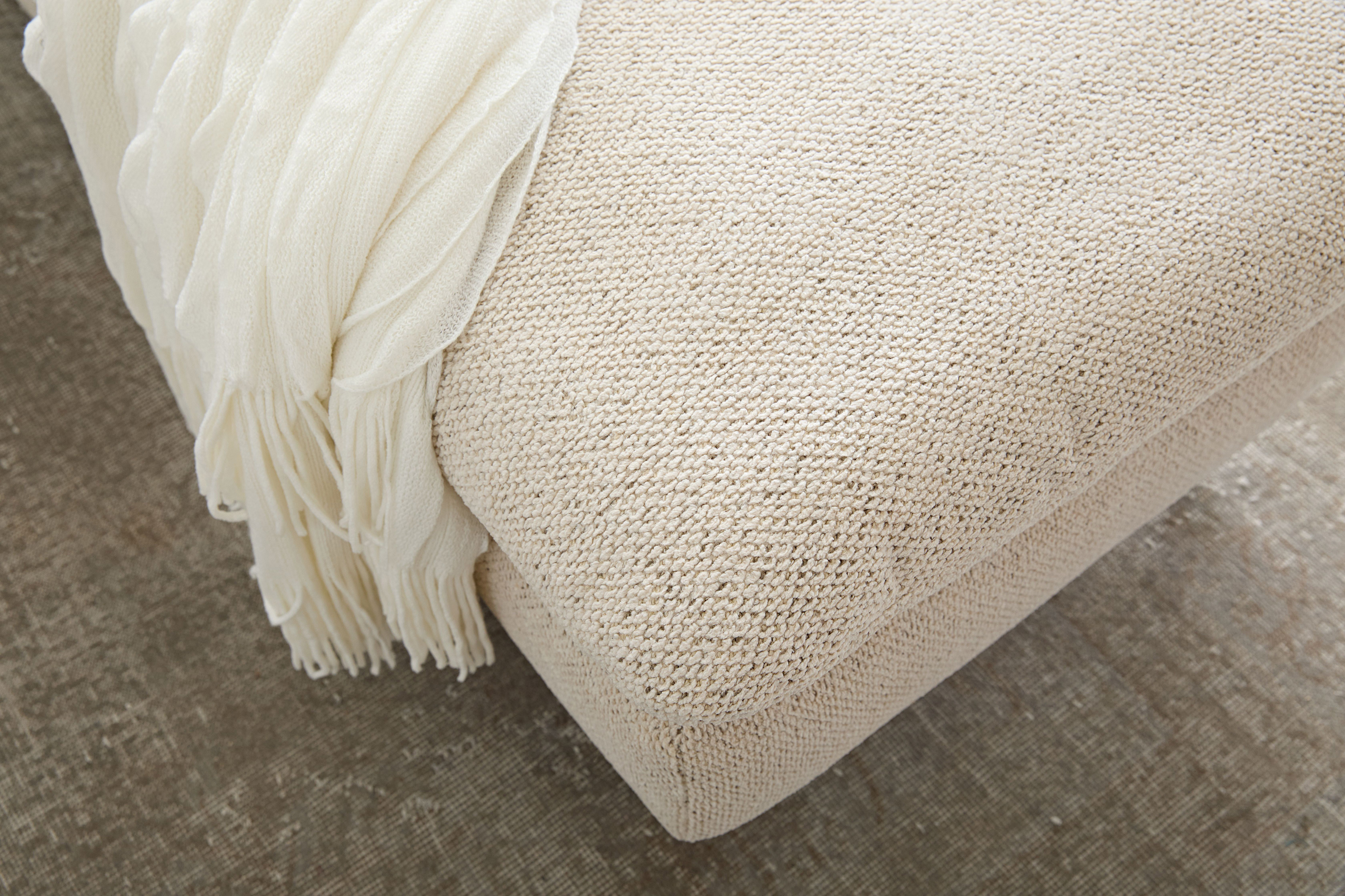 Die Polsterung ist besonders leger verarbeitet, um ein bestimmtes, super softes Erscheinungsbild zu erzeugen. Die Bezüge können bereits bei Auslieferung ein ausgeprägtes Wellenbild zeigen, das design- und konstruktionsbedingt gewollt ist und sich durch Gebrauch noch verstärken kann. Dies ist kein Qualitätsmangel, sondern eine modellbedingte Eigenschaft.
