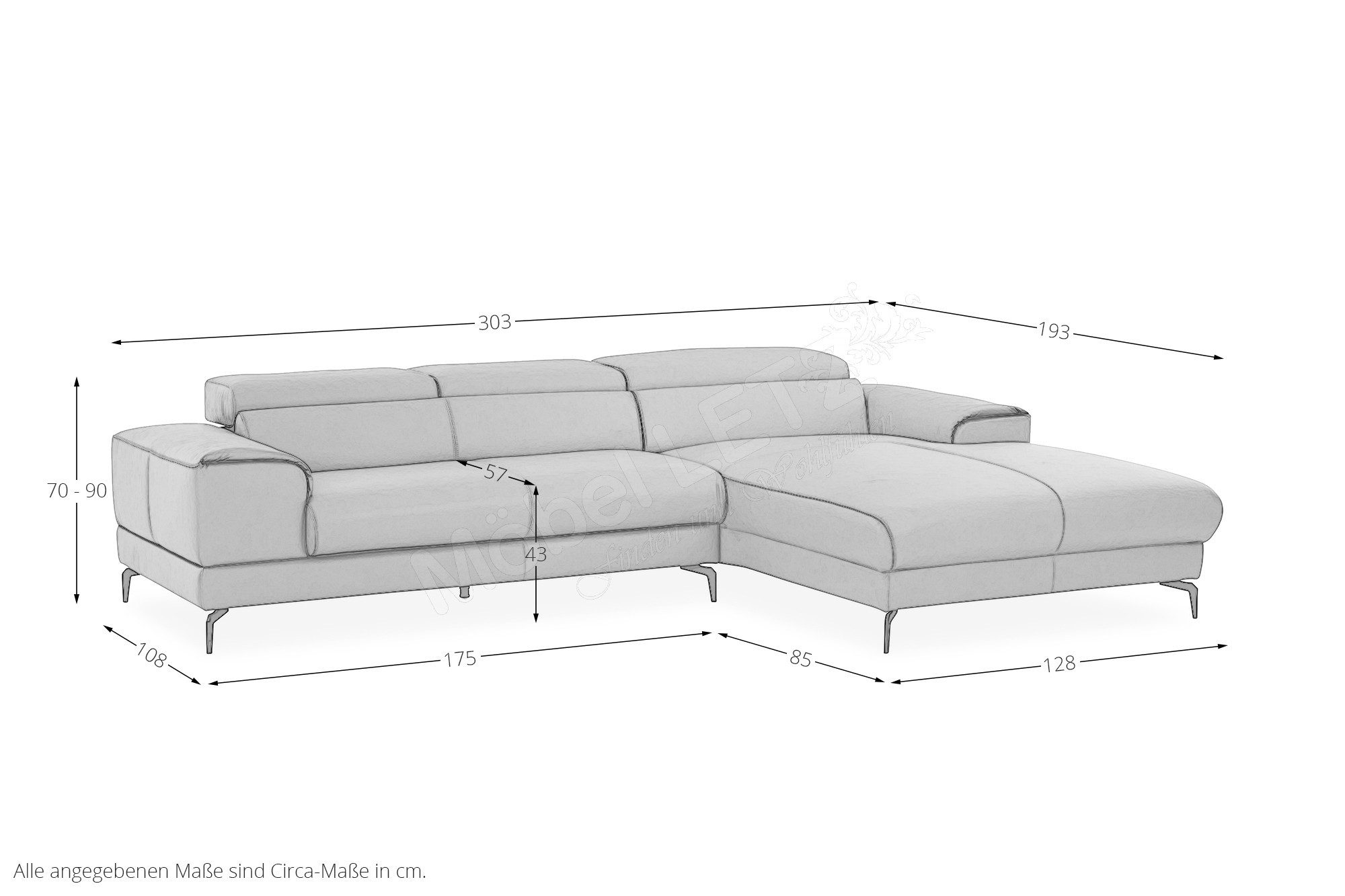 - 1 x KL90R - Longchair Armlehne rechts, ca. BTH: 128/193/70-90 cm