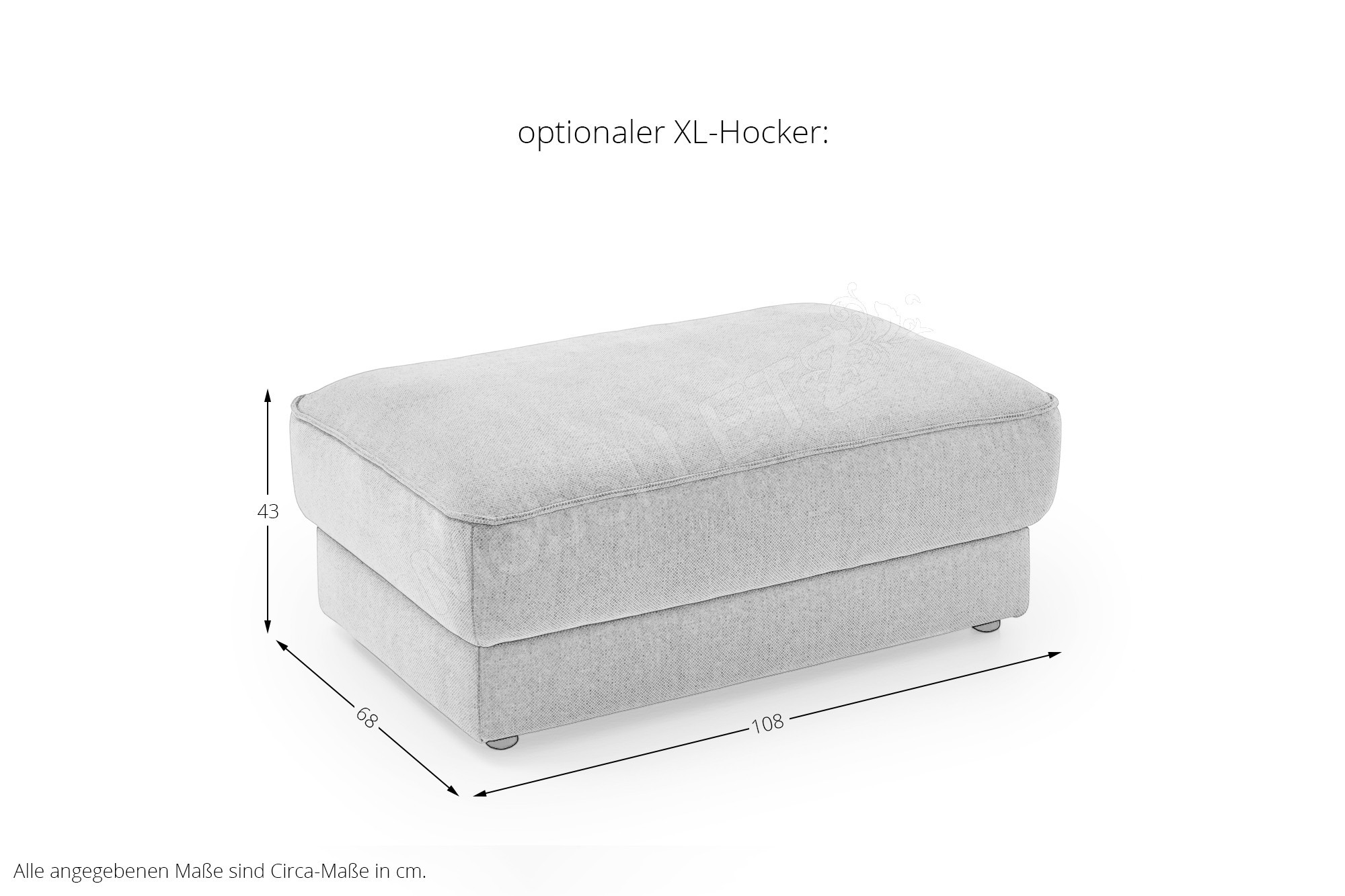 - 1 x 1,5AhoR - 1,5-Sitzer mit Anstellhocker rechts, ca. BHT: 123/83/125 cm