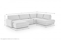 Eine ruhige sowie harmonische Eleganz strahlt die hier abgebildete Wohnlandschaft ZE-EM24139 von Zehdenick Polstermöbel aus und verwandelt mit dem modernen Äußeren jeden Wohnraum in eine Wohlfühloase. Die klare, aber auch moderne Linienführung prägt die Optik des Modells und sorgt dafür, dass es sowohl in einem klassischen als auch in einem zeitgenössischen Interieur harmonisch zur Geltung kommt. Die u-förmige Zusammenstellung schafft, mit einem großzügigen Stellmaß von ca. 180 x 374 x 248 cm, viel Raum zum Entspannen, Durchatmen und Verweilen, wobei der Chenille-Flachgewebe-Bezug mit einer angenehm weichen Haptik überzeugt. Auch mit inneren Werten weiß die Zehdenick Garnitur zu punkten, so schafft die Polsterung, die sich aus zwei unterschiedlichen Kaltschaumqualitäten in Sandwichbauweise zusammensetzt, ein einmaliges Sitzerlebnis, welches Sie über viele Stunden hinweg genießen werden. Für ein Mehr an Komfort lässt sich das Modell mit einer manuellen Sitztiefenverstellung ausstatten, die es Ihnen ermöglicht, die Sitztiefe um etwa 20 cm zu verkleinern. Sollten Sie eine kleinere Zusammenstellung präferieren, stehen Ihnen in unserem Polsterplaner zahlreiche Elemente zur Verfügung - werden Sie kreativ und kreieren Sie sich eine auf Sie sowie Ihre Einrichtung angepasste Sofagarnitur. ZE-EM24139 aus dem Hause Zehdenick lädt dazu ein, den Alltag hinter sich zu lassen und jeden Moment bewusst zu genießen.