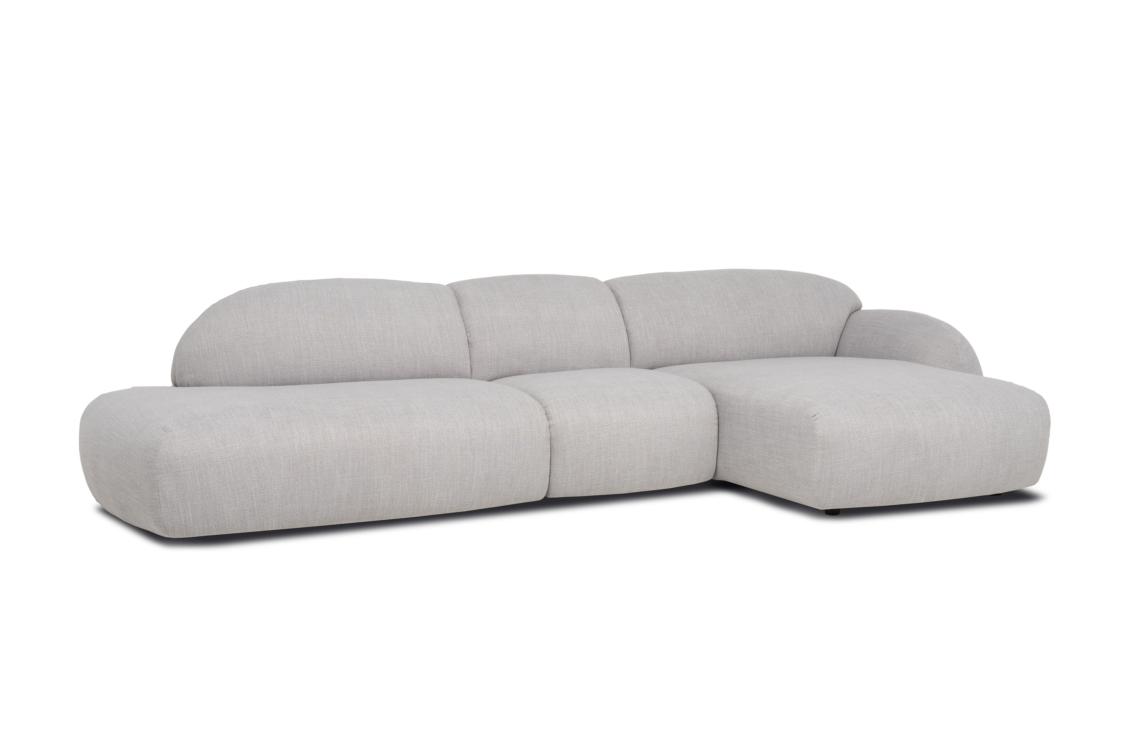 Ein Qualitätsmöbelstück mit einem außergewöhnlichen Aussehen, einer bauchigen Formensprache und wohlgeformten Rundungen hat der Hersteller designwerk mit dem Modell Globe kreiert. Das hinreißende Ecksofa, welches sich aus einem 2-Sitzer mit Abschlussteil, einem 1-Sitzer Zwischenelement und einer Recamiere zusammensetzt, sticht nicht nur mit seiner außergewöhnlichen Formgebung hervor, auch der pflegeleichte Bezug aus Flachgewebe in der zeitlosen Farbe "silver" fällt sofort ins Auge und sorgt für ein herausragendes Gesamtbild mit Wow-Effekt. Mit einem Stellmaß von etwa 369 x 177 cm ist das Polstersofa bestens für mittelgroße Räumlichkeiten oder die erste eigene Wohnung geeignet und Sie müssen keinesfalls auf Qualität sowie Komfort verzichten. Eine hochwertige, auf Nosagfedern ruhende, Schaumstoffpolsterung, schenkt Ihnen ein fabelhaftes Sitzerlebnis, das zu gemütlichen Abendstunden bei der Lieblingsserie, kuscheligen Momenten mit den Kindern oder ruhigen Augenblicken ganz für sich allein einlädt. Bereichern auch Sie Ihr Zuhause mit einzigartigem Flair. Charakterstark und extravagant - Globe aus dem Hause designwerk.