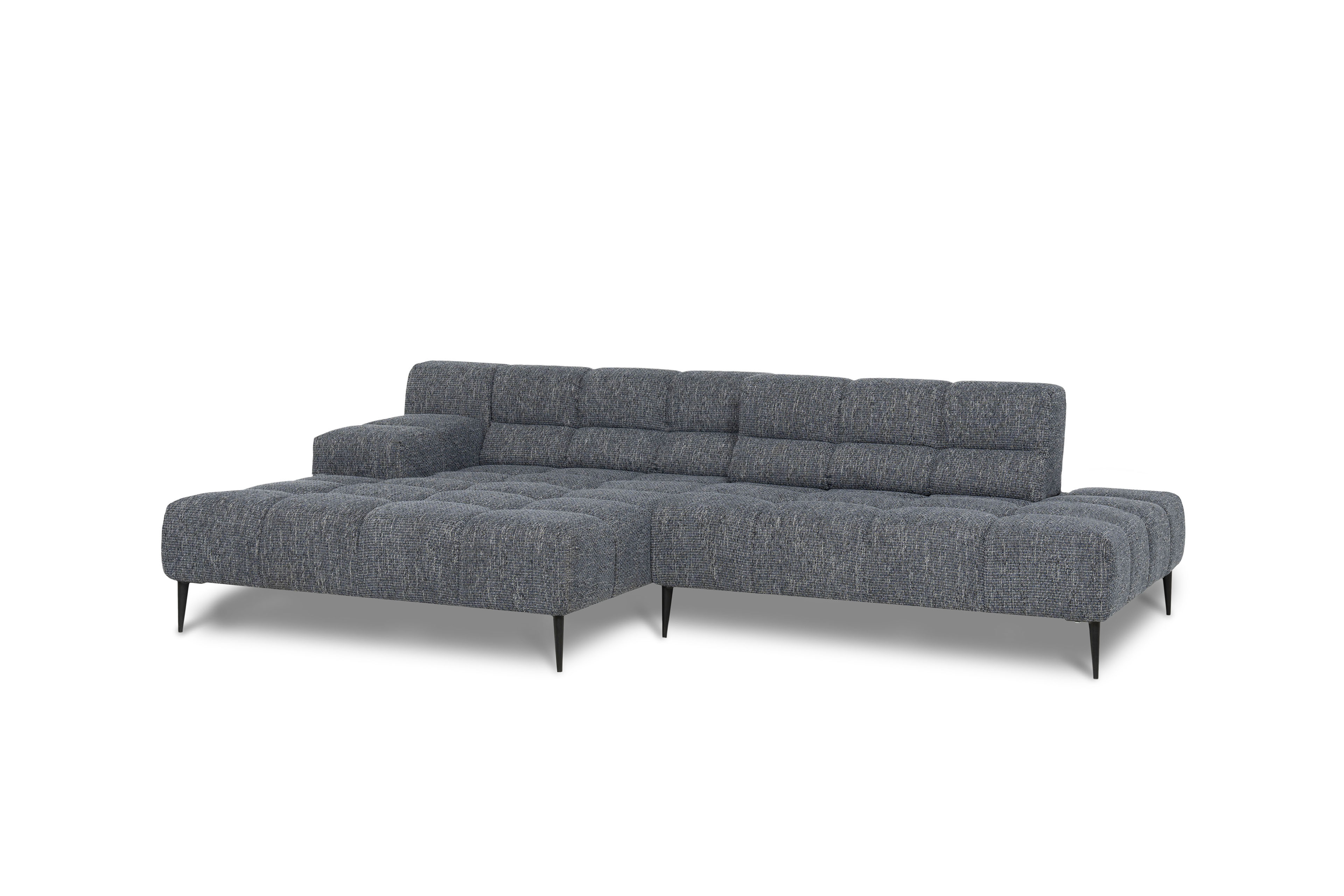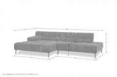 Sie wünschen sich eine Polstergarnitur, die modernes Design, hohen Sitzkomfort sowie großzügigen Platz vereint? Dann treffen Sie mit der designwerk Eckcouch Liam genau die richtige Wahl. Dieses stilvolle Sitzmöbel präsentiert sich in einer L-Form mit einer Recamiere und einem 2-Sitzer mit Abschlussteil - perfekt für entspannte Stunden mit Familie und Freunden. Mit einer Gesamtbreite von ca. 169 x 286 cm bietet die Garnitur reichlich Platz, um zur Ruhe zu kommen oder gesellige Abende zu genießen. Dank der hochwertigen Kaltschaumpolsterung auf Nosag-Stahlwellenfedern sitzt es sich jederzeit angenehm weich und stützend zugleich. Der Rücken ist ebenfalls mit Kaltschaum gepolstert, was für ein dauerhaft komfortables Sitzgefühl sorgt. Die manuelle Rückenverstellung im 2-Sitzer mit Abschlussteil bietet ein spürbares Plus an Komfort: Ob gemütlich zurückgelehnt beim Filmabend oder aufrecht beim Gespräch - Sie bestimmen selbst, wie Sie sitzen möchten. Diese Flexibilität macht das Ecksofa zu einem echten Lieblingsplatz in jeder Lebenslage. Die Kombination aus klaren Linien, modernen Proportionen und einem eleganten Bezug aus Flachgewebe in dunkelgrauer Variante verleiht Ihrem Wohnzimmer eine zeitgemäße, behagliche Atmosphäre. Schwarze Metallfüße mit einer Höhe von ca. 17 cm runden das edle Erscheinungsbild gekonnt ab. Auf Wunsch lässt sich die Garnitur durch einen passenden Hocker ergänzen. Er fügt sich harmonisch ins Gesamtbild ein und bietet zusätzliche Bequemlichkeit - als Fußablage, Sitzgelegenheit oder kleine Ablagefläche. Liam von designwerk - ein Stück Wohnkultur, die Sie jeden Tag aufs Neue genießen werden.