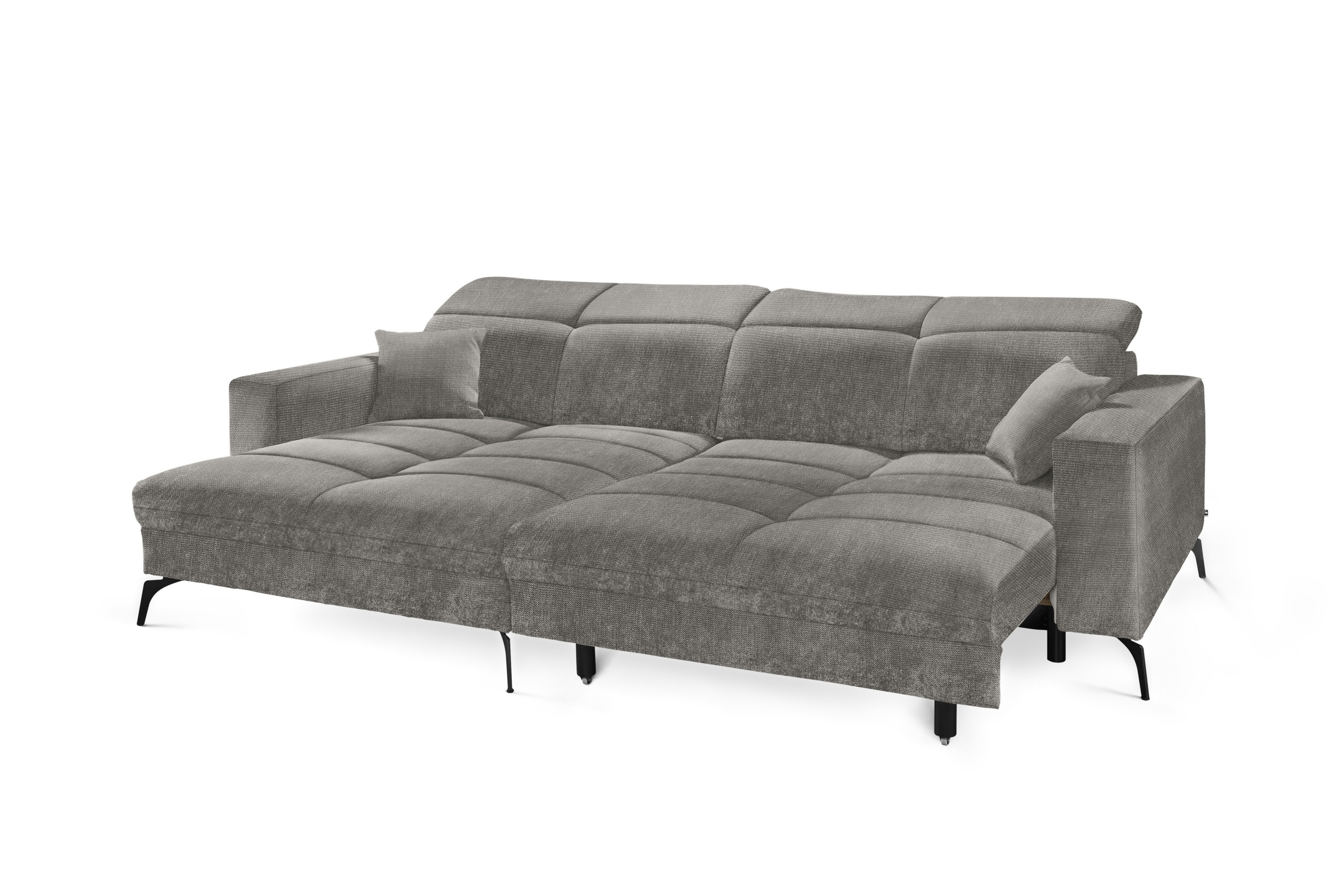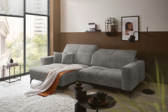 In einer Welt, in der unser Zuhause mehr denn je Rückzugsort, Wohlfühloase und persönlicher Ausdruck ist, sollte eine Couch nicht einfach nur gut aussehen - sie sollte sich mühelos in Ihr Leben einfügen. Schönheit, Komfort sowie clevere Funktionen vereint das Modell Jersey von set one by Musterring in einem einzigen Möbelstück, das mehr kann, als nur dazustehen. Das weiche Chenille-Flachgewebe im zeitlosen Grau schmeichelt dem Auge und lädt schon beim ersten Blick zum Hinsetzen sowie Anlehnen ein. Wobei die Ziernähte im Sitz- sowie Rückenbereich zusammen mit den schmalen Metallfüßen dem Ecksofa eine elegante Leichtigkeit verleihen, sodass es sich in nahezu jeden Einrichtungsstil harmonisch einfügt. Optimale Flexibilität bei der Platzierung des Sofas verleiht Ihnen der echt bezogene Rücken: Platzieren Sie Ihre neue Couch genau dort, wo sie zur Geltung kommt - auf Wunsch nicht nur vor der Wand, sondern mitten im Raum, als Herzstück Ihres Wohnzimmers. Ist der richtige Platz gefunden, können Sie künftig zahlreiche entspannende Stunden auf dem neuen Sitzmöbel verbringen. Sollten Sie es sich bei einem Serienmarathon so richtig gemütlich machen wollen, ist die Garnitur bereits mit einer motorischen Vorziehfunktion ausgestattet, welche auf Knopfdruck ausgelöst wird und eine großzügige Liegefläche von ca. 240 x 125 cm schafft. Modern, komfortabel, einladend - das Modell Jersey von set one by Musterring.