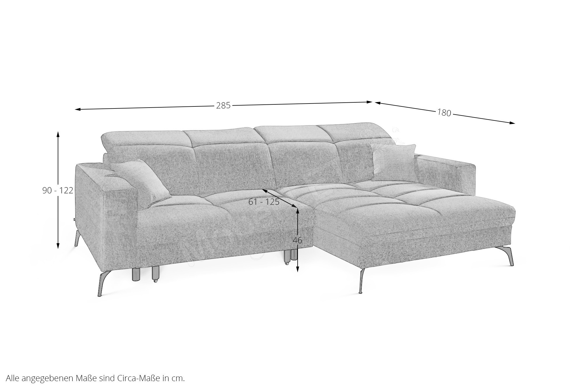 In einer Welt, in der unser Zuhause mehr denn je Rückzugsort, Wohlfühloase und persönlicher Ausdruck ist, sollte eine Couch nicht einfach nur gut aussehen - sie sollte sich mühelos in Ihr Leben einfügen. Schönheit, Komfort sowie clevere Funktionen vereint das Modell Jersey von set one by Musterring in einem einzigen Möbelstück, das mehr kann, als nur dazustehen. Der weiche Cordbezug in einem strahlenden Gelb schmeichelt dem Auge und lädt schon beim ersten Blick zum Hinsetzen sowie Anlehnen ein. Wobei die Ziernähte im Sitz- sowie Rückenbereich zusammen mit den schmalen Metallfüßen dem Ecksofa eine elegante Leichtigkeit verleihen, sodass es sich in nahezu jeden Einrichtungsstil harmonisch einfügt. Optimale Flexibilität bei der Platzierung des Sofas verleiht Ihnen der echt bezogene Rücken: Platzieren Sie Ihre neue Couch genau dort, wo sie zur Geltung kommt - auf Wunsch nicht nur vor der Wand, sondern mitten im Raum, als Herzstück Ihres Wohnzimmers. Ist der richtige Platz gefunden, können Sie künftig zahlreiche entspannende Stunden auf dem neuen Sitzmöbel verbringen. Sollten Sie es sich bei einem Serienmarathon so richtig gemütlich machen wollen, ist die Garnitur bereits mit einer motorischen Vorziehfunktion ausgestattet, welche auf Knopfdruck ausgelöst wird und eine großzügige Liegefläche von ca. 240 x 125 cm schafft. Modern, komfortabel, einladend - das Modell Jersey von set one by Musterring.
