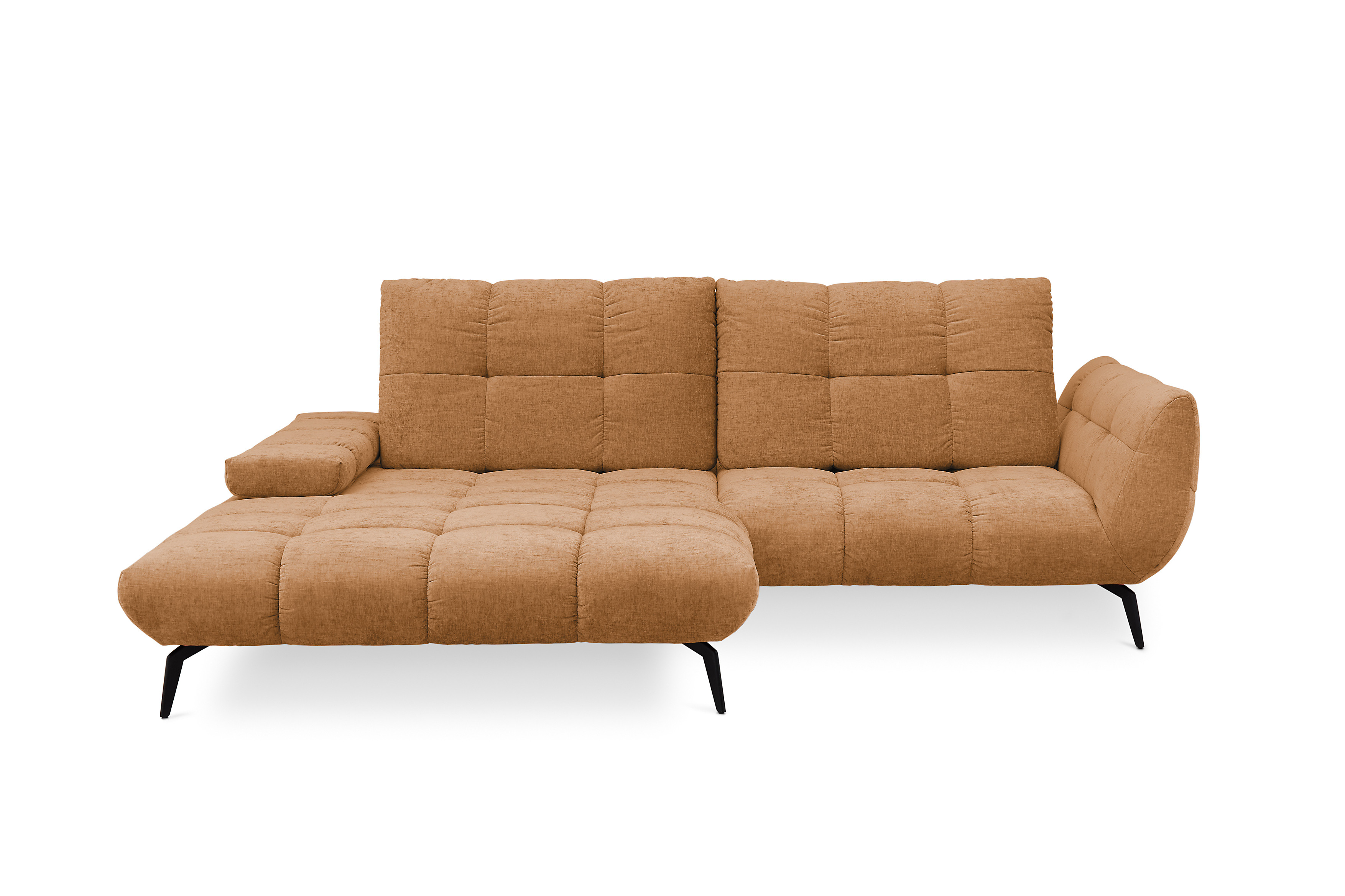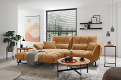 Modernes Design trifft auf einladende Großzügigkeit – so zeigt sich die Sofaecke namens Malibu-LE26 von set one by Musterring und wird so zum zentralen Blickfang in Ihrem Wohnzimmer. Das anschmiegsame Chenille-Flachgewebe im warmen Farbton "dijon" verleiht dem Möbelstück eine frische, lebendige Ausstrahlung und bringt Leichtigkeit in jeden Raum, während die fein gesteppte Polsterung von Sitz und Rücken für eine ausdrucksstarke, ästhetische Optik sorgt. So entsteht ein Wohngefühl, das gleichermaßen stilvoll wie auch entspannt wirkt. Auf einem Stellmaß von ca. 191 x 273 cm bietet Ihnen das Ecksofa reichlich Platz zum Zurücklehnen, Ausstrecken und Genießen. Die angenehm abgestimmte Polsterung sorgt dabei für ein komfortables Sitzgefühl, das sowohl im Alltag als auch bei besonderen Momenten überzeugt. Hochwertige Materialien und eine sorgfältige Verarbeitung garantieren Langlebigkeit sowie ein dauerhaft schönes Erscheinungsbild. Dank durchdachter Funktionen lässt sich die Polstergarnitur flexibel an Ihre individuellen Bedürfnisse anpassen. Neben der integrierten Sitztiefenverstellung steht Ihnen auf Wunsch auch eine Rückenneigungsverstellung zur Verfügung. Aus zwei unterschiedlichen Armteilausführungen, wobei die Variante Typ A sogar mit Rasterbeschlag gewählt werden kann, mit der sich der Neigungswinkel flexibel regulieren lässt, wählen Sie Ihren bevorzugten Favoriten. Schaffen Sie mit den Zusatzfunktionen ein Höchstmaß an Komfort – vom aufrechten Sitzen bis zum entspannten Liegen – das set one by Musterring Sofa passt sich so jeder Situation mühelos an. Passend zur Polsterecke bietet die Serie als Ergänzung einen Hocker und auch Zier- sowie Nierenkissen sind erhältlich, um das Wohnkonzept stimmig zu vervollständigen. Mit seiner harmonischen Farbwirkung verleiht Malibu-LE26 dem Raum eine wohnliche und einladende Atmosphäre. Alternativ stehen über die Zusatzoptionen weitere Farben sowie Bezugsstoffe zur Auswahl. Warten Sie nicht länger, erfüllen Sie sich Ihren Wohntraum und genießen Sie jeden Moment auf dem Sofa, das Komfort sowie Stil perfekt vereint.