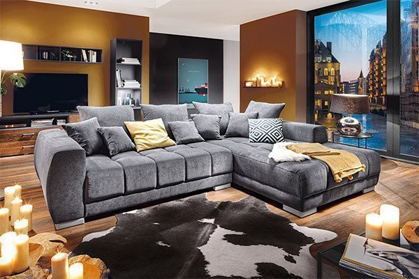 Damit das Sofa in Ihr Wohnzimmer passt, kommt es auf die richtige Größe und Form an. Kleine Sofas sind bereits mit unter 200 cm Breite erhältlich, während größere Sofas über 400 cm breit sein können. Arrangieren Sie mehrere Sofas zur Polstergruppe oder kaufen Sie mit einer 3-2-1 Garnitur eine Kombination aus Dreisitzer, Zweisitzer und Sessel. Eine Récamière, die im eigentlichen Sinne ein Sofa mit Armteilen und ohne Rückenlehne ist, erhalten Sie häufig als Abschlusselement bei Ecksofas oder Wohnlandschaften. Ein Ecksofa in L-Form oder eine Wohnlandschaft in U-Form füllen die Raumecke geschickt mit einem weiteren Sitzplatz. Bei einem Ecksofa können Sie oftmals selbst festlegen, welcher Schenkel länger ist, sodass die Couch mit den räumlichen Gegebenheiten in Ihrem Wohnzimmer harmoniert. Damit die ganze Familie Platz hat, sind Wohnlandschaften perfekt, die auch große Wohnzimmer gemütlich erscheinen lassen. Big Sofas bringen mit großzügiger Sitzfläche, üppigen Polsterungen und einladenden Formen Extra-Komfort und sind vor allem als Sofa für moderne Wohnzimmer beliebt. Viele Sofas können Sie online frei planen, um die Form und Größe der Couch selbst zu konfigurieren.