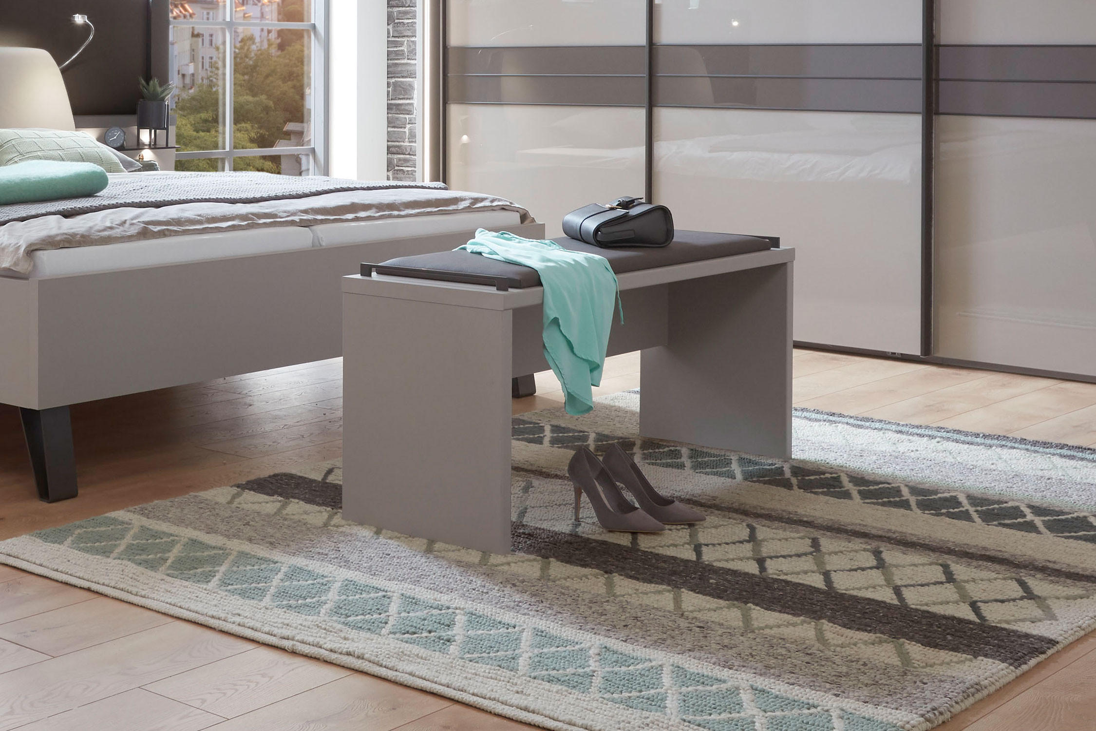 Als formschöne und praktische Ergänzung für Ihr Schlafzimmer bieten wir Ihnen hier eine kieselgraue Bettbank aus dem Wiemann Programm Kopenhagen an. Sie verfügt über ein bequemes, havannafarbenes Kunstlederpolster und ist damit eine komfortable Sitzgelegenheit, die vor Ihrem Bett oder auch in einem Ankleidezimmer ihren Platz finden kann. Die Griffe, die sich links und rechts neben dem Sitzpolster befinden, ermöglichen Ihnen nicht nur eine angenehm leichte Positionsveränderung des Möbelstücks, sondern beispielsweise auch einen sicheren Halt, wenn Sie sich beim An- oder Entkleiden abstützen möchten. Im modellzugehörigen Typenplan, den Sie mithilfe des Links öffnen können (klicken Sie dazu einfach auf das farbig geschriebene Wort Typenplan), stellen wir Ihnen alle Kopenhagen Schlafzimmermöbel im Detail vor. Falls Sie weitere Elemente kaufen oder sich eine Planung erstellen lassen möchten, helfen Ihnen unsere kompetenten Einrichtungsexperten gern per Telefon oder Kontaktformular weiter.