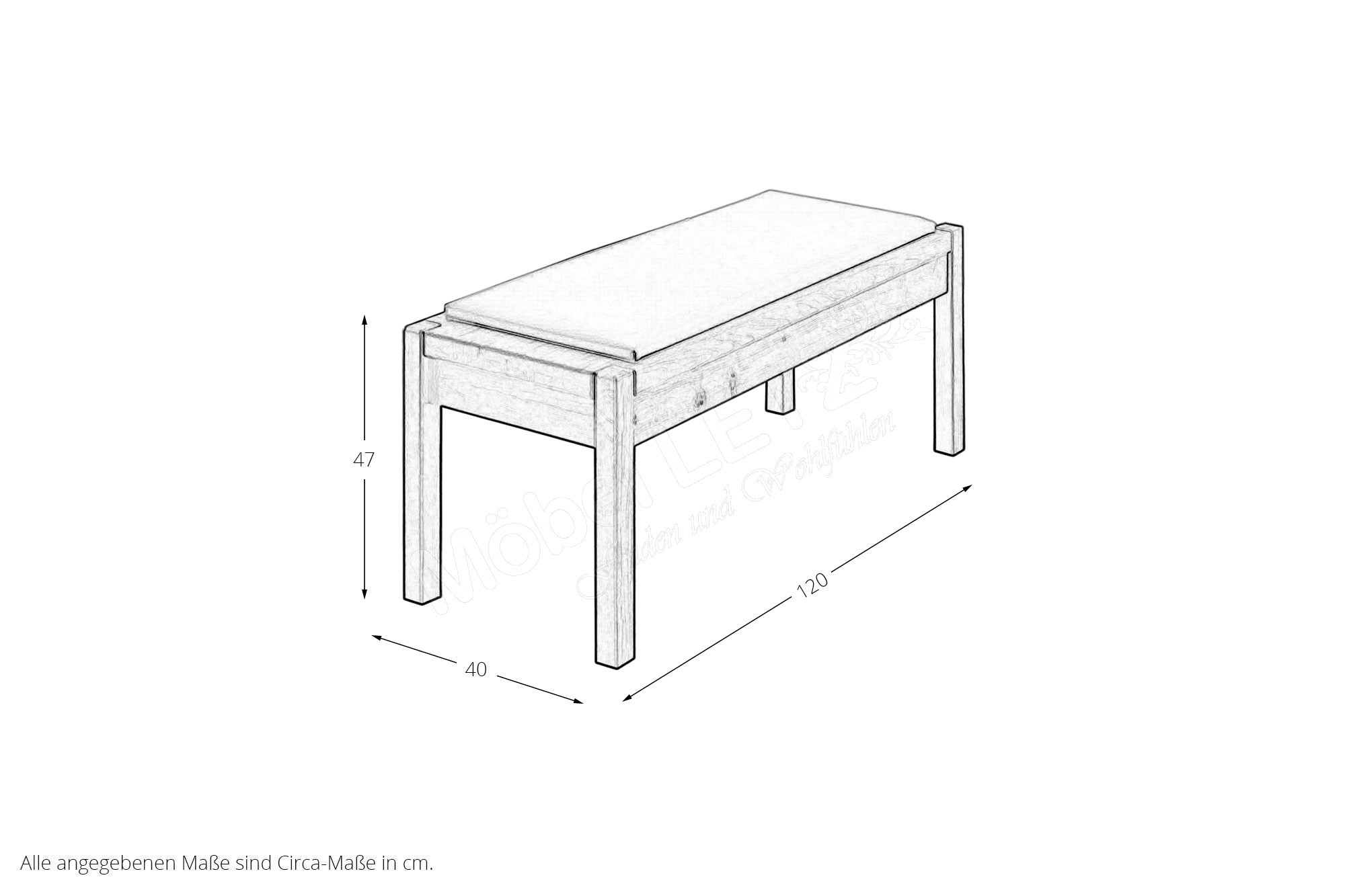 - 1 x 660 - Ankleidebank, BHT ca. 120/46,3/40 cm