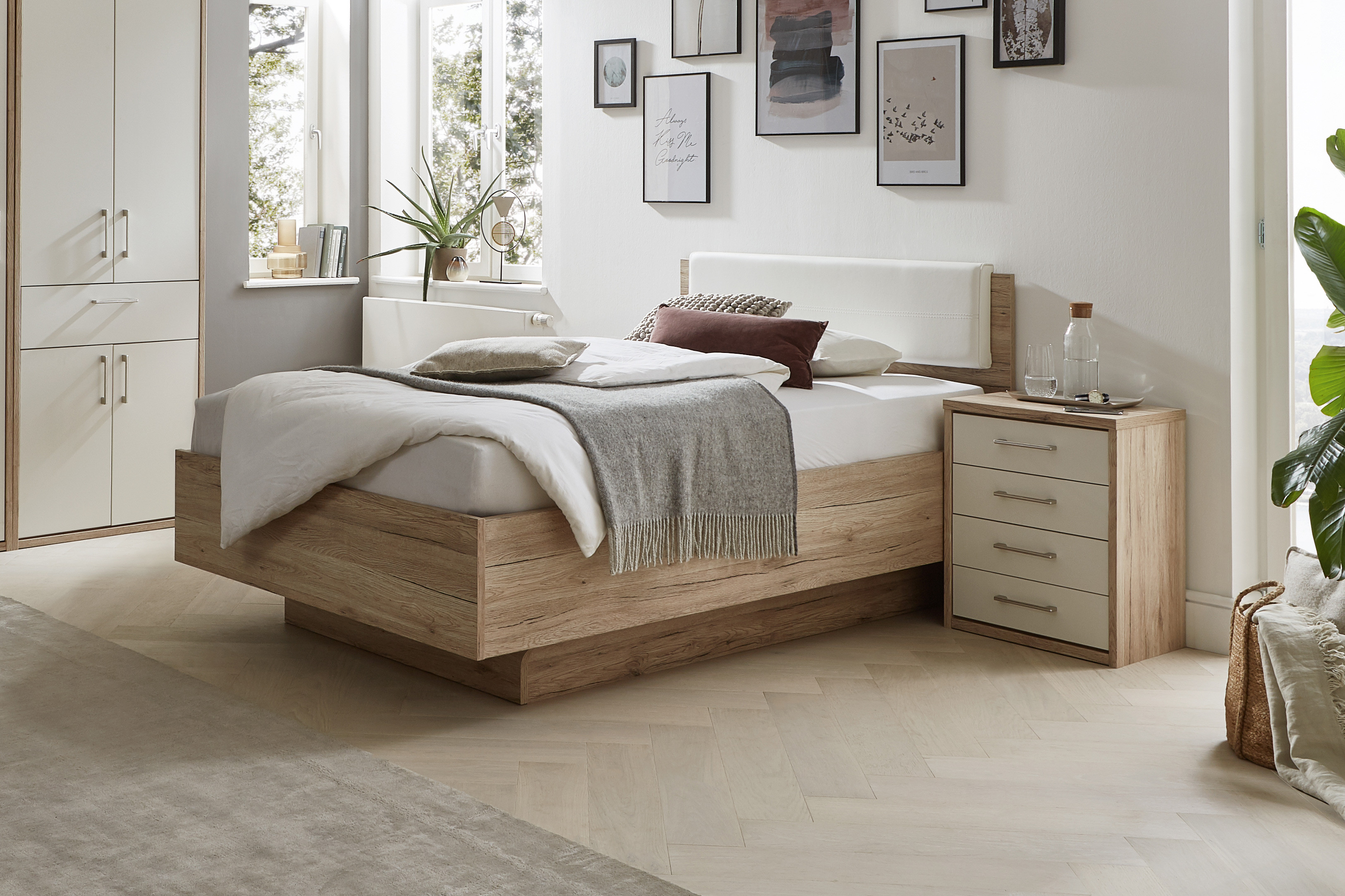 Genießen Sie mit Achat Komfort von Priess die Freiheit, sich ein Bett zu konfigurieren, das sich komplett an Ihre Bedürfnisse anpasst. Hier stehen Ihnen zahlreiche Möglichkeiten zur freien Auswahl. Bestimmen Sie mit der wählbaren Ausführung die Bettfarbe und wählen Sie mit der Bezugswahl das passende Kopfteilpolster aus. Unter dem Attribut „Liegefläche“ finden Sie alle Bettgrößen, die von einer Einzelbettgröße bis hin zum gemütlichen Doppelbett mit einer Liegefläche von 200 x 220 cm reichen. Die komfortable Bettseitenhöhe erleichtert Ihnen in der ca. 49 cm hohen Ausführung das abendliche Zubettgehen und das morgendliche Aufstehen. Lehnen Sie sich gemütlich an das dick gepolsterte Kopfteil, wenn Sie vor dem Schlafen noch ein wenig lesen möchten. Den spannenden Roman und Ihre Brille können Sie dann auf der optional erhältlichen Nachtkommode bequem ablegen. Der extra hoch gestaltete Nachtschrank lässt sich farblich an das Bett anpassen und bietet Ihnen gleich noch vier praktische Schubkästen. Das komplette Priess Programm Achat Komfort entdecken Sie mit dem Konfigurator. Hier finden Sie weitere Betten, Schränke in zahlreichen Breiten und Höhen und noch vieles mehr. Passende Lattenroste und Matratzen für das Bett von Priess erhalten Sie in unserer Rubrik „Bettzubehör“. Gerne erstellen wir Ihnen auch ein unverbindliches Angebot mit visueller Planung. Wir freuen uns über Ihre Anfrage.