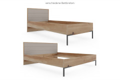 - Bett: ohne Lattenrost und Matratze, mit Polsterkopfteil (Bezug Mercury 103 sand, Flockstoff 100% Polyester) und Metall-Winkelfüßen