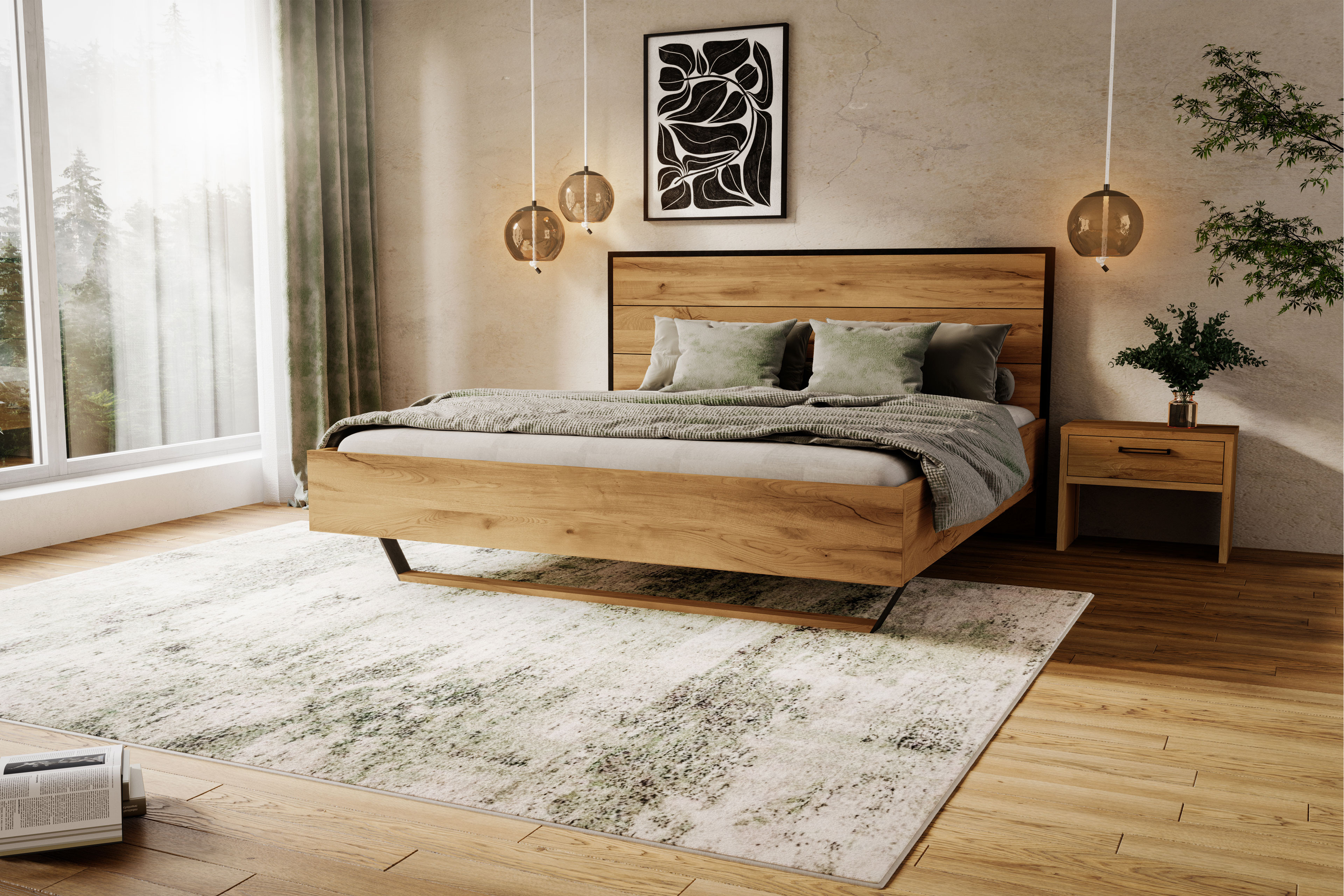 - Bettrahmen: Furnier Kupfereiche gebürstet matt natur geölt