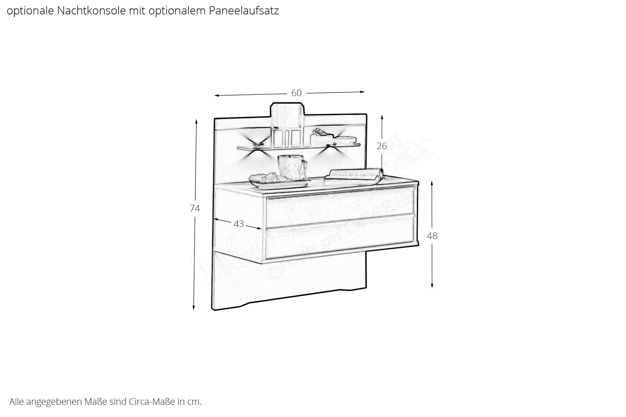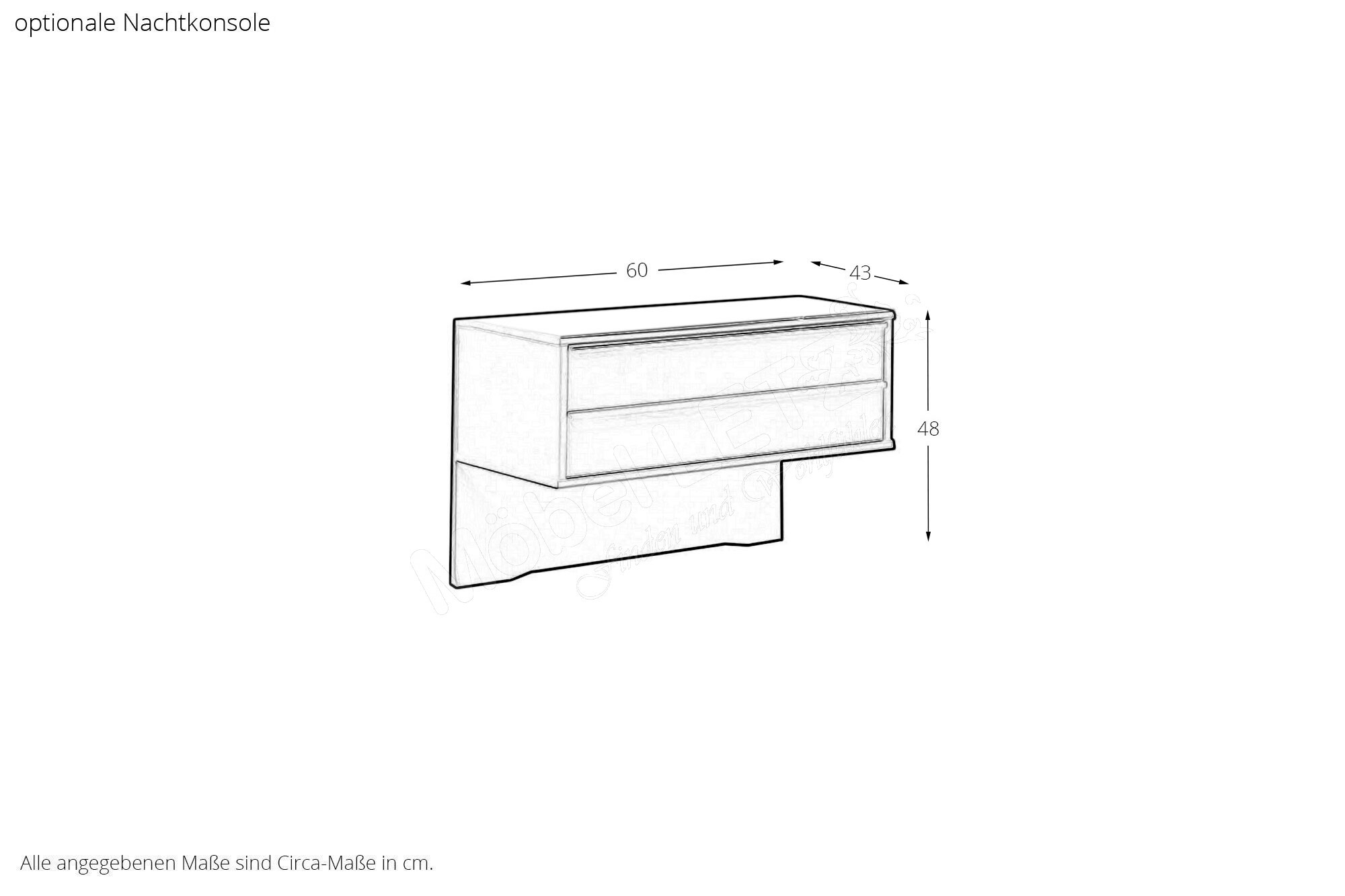 - Bett: Höhe Kopfteil ca. 102 cm, Höhe Fußteil/ Oberkante Bettseite ca. 48 cm