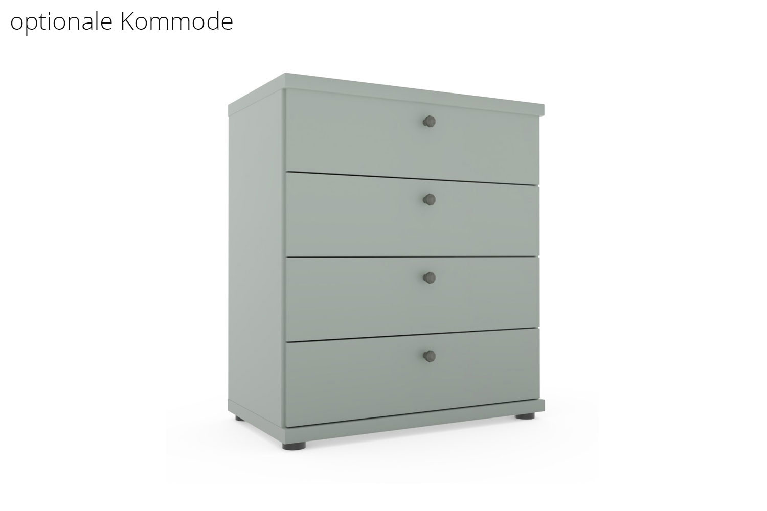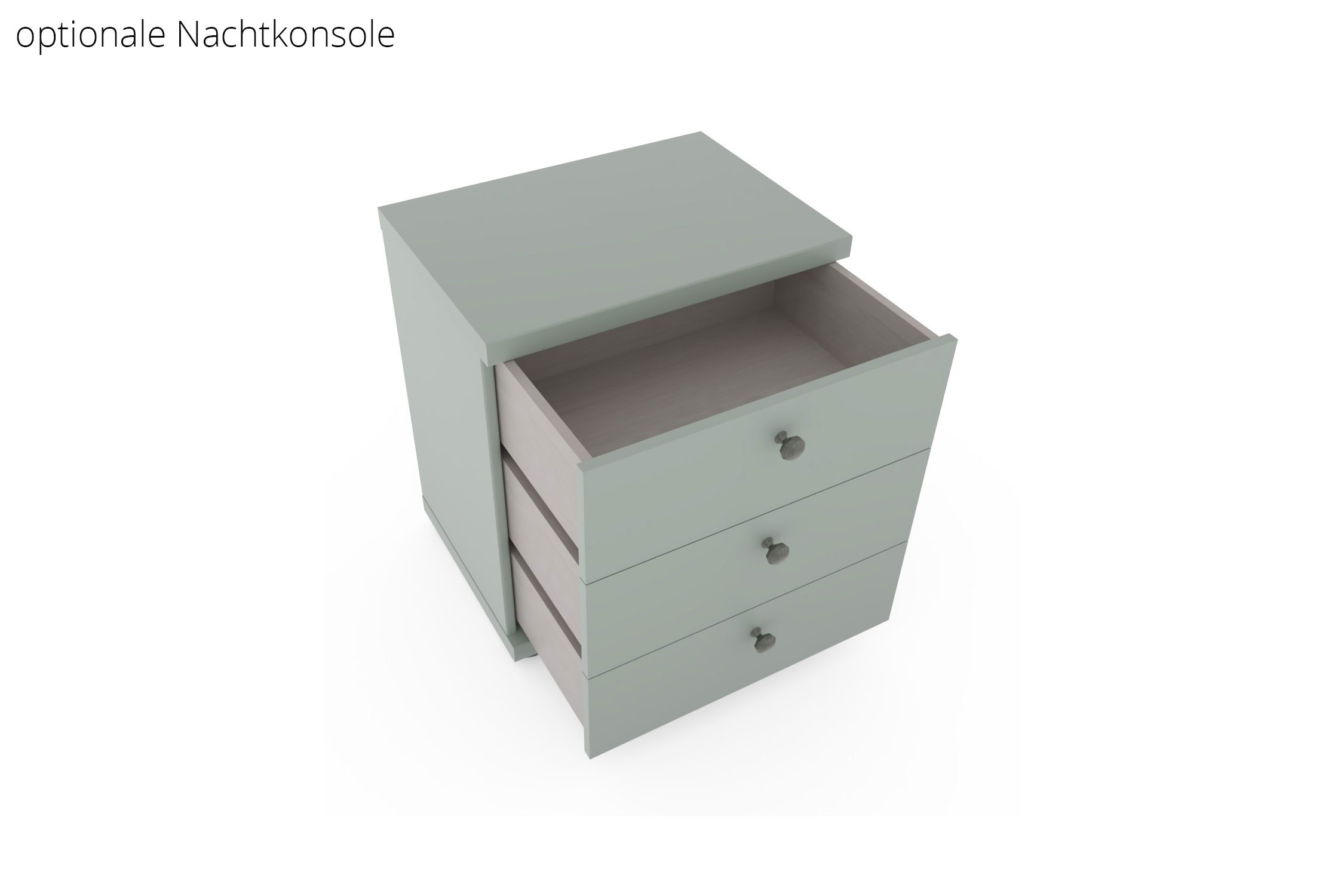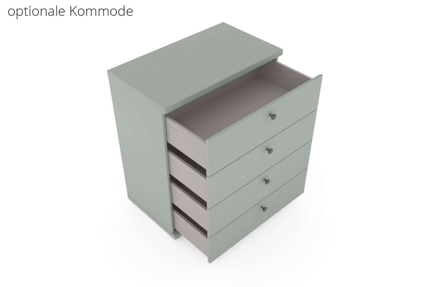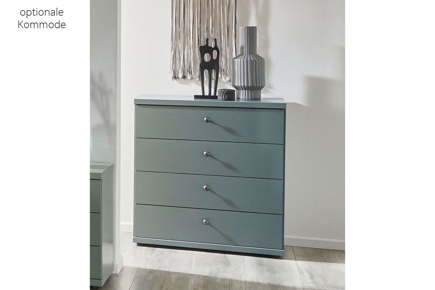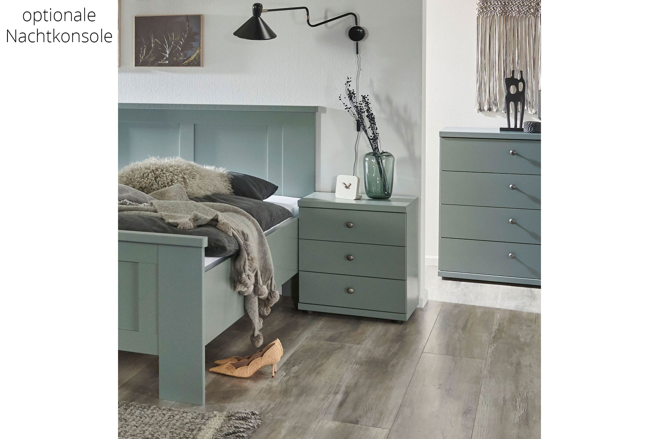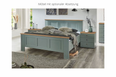 Das Landhaus-Bett der Schlafzimmerserie Marlow von Wiemann verfügt über ein stiltypisches Kopfteil mit Kassettenoptik und präsentiert sich hier in der Trendfarbe Salbeigrün. Diese sorgt aufgrund ihres gedämpft erdigen und neutralen Erscheinungsbildes für eine entspannte, gemütliche Atmosphäre. Bestimmen Sie mithilfe der Zusatzoptionen die für Sie geeignete Liegeflächengröße des Bettes und fügen Sie ganz nach Bedarf den passenden Nachtschrank und/ oder die Kommode mit vier Auszügen zum Angebot hinzu. Gern können Sie die Möbel auch in einer alternativen Farbausführung wählen und mit einer Absetzung in Form einer Holznachbildung versehen. Für die gewählte Bettgröße geeignete Lattenroste und Matratzen finden Sie im Möbel Letz Online-Shop in der Kategorie Bettzubehör. Entdecken Sie im Typenplan und im Prospekt unter Downloads die Marlow Möbelvielfalt und lassen Sie sich inspirieren. Ihre individuelle Wunsch-Konfiguration können Sie telefonisch oder via Kontaktformular bei unseren Einrichtungsexperten bestellen.