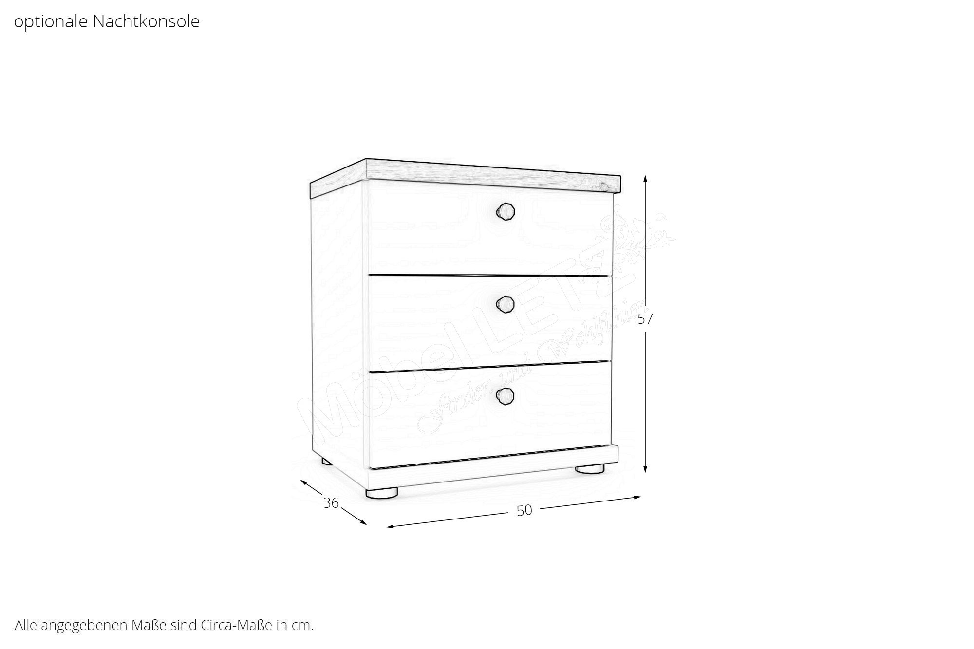 - Bett: Höhe Kopfteil ca. 104 cm, Höhe Fußteil ca. 62 cm, Höhe Oberkante Bettseite ca. 48 cm