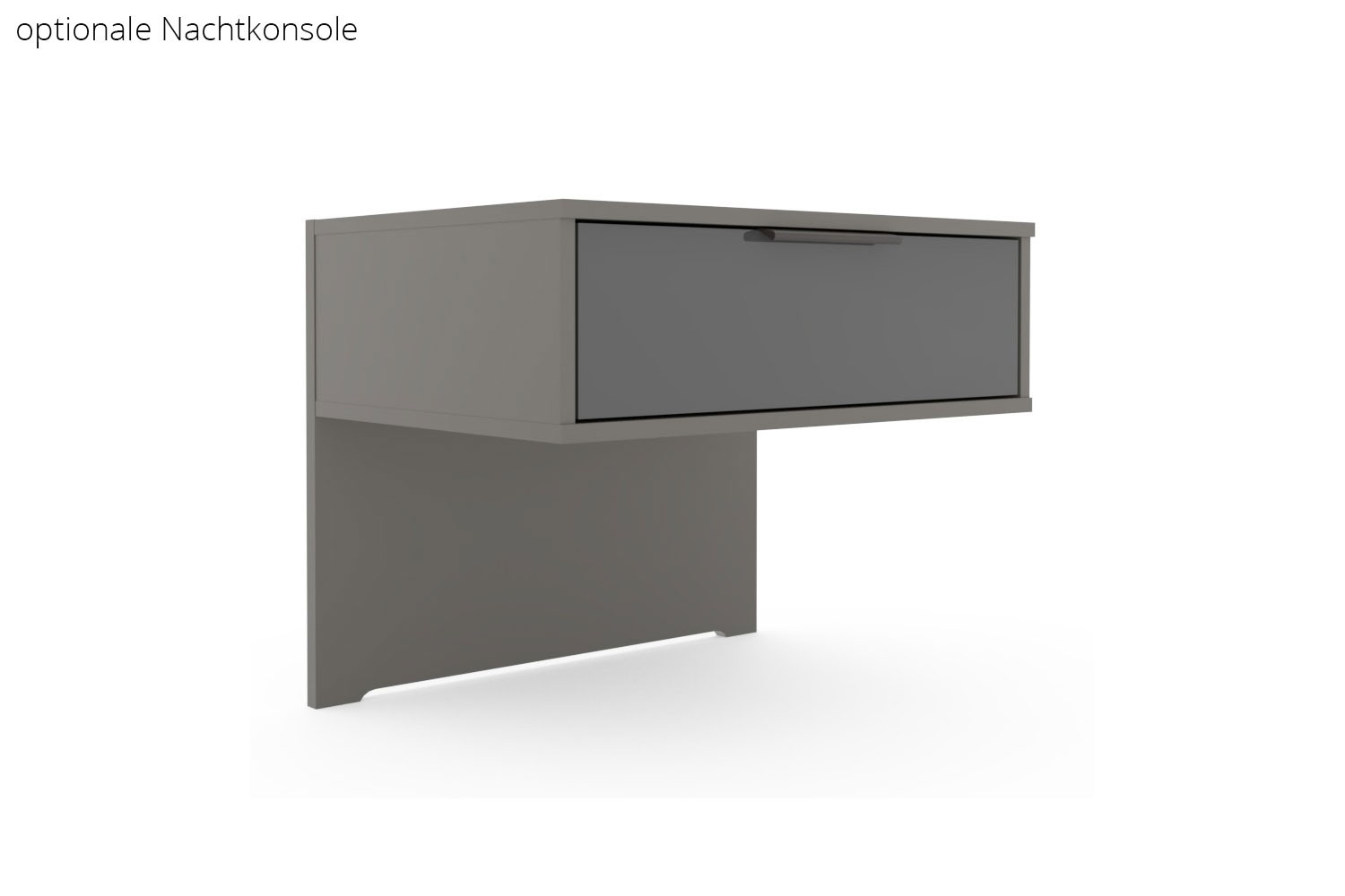 Die Betten dieser Möbelserie sind nicht frei im Raum positionierbar. Teilweise sind die Kopfteile der Betten "zweifarbig" (Unterteil in einer anderen Ausführung als Oberteil des Kopfteils - auf Rückseite sichtbar).