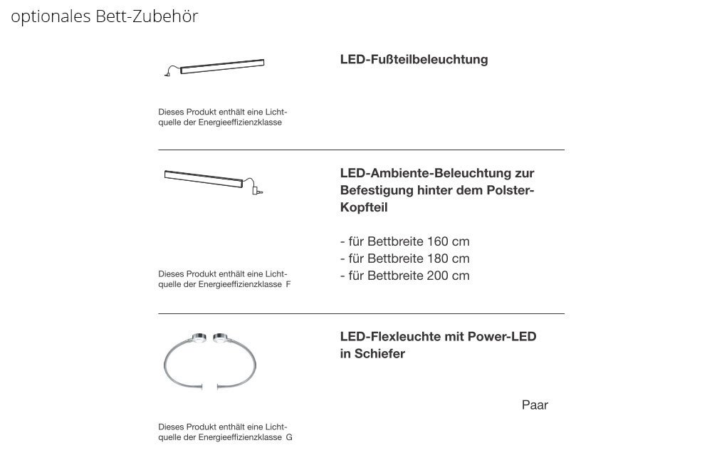 Die Betten dieser Möbelserie sind nicht frei im Raum positionierbar. Teilweise sind die Kopfteile der Betten "zweifarbig" (Unterteil in einer anderen Ausführung als Oberteil des Kopfteils - auf Rückseite sichtbar).