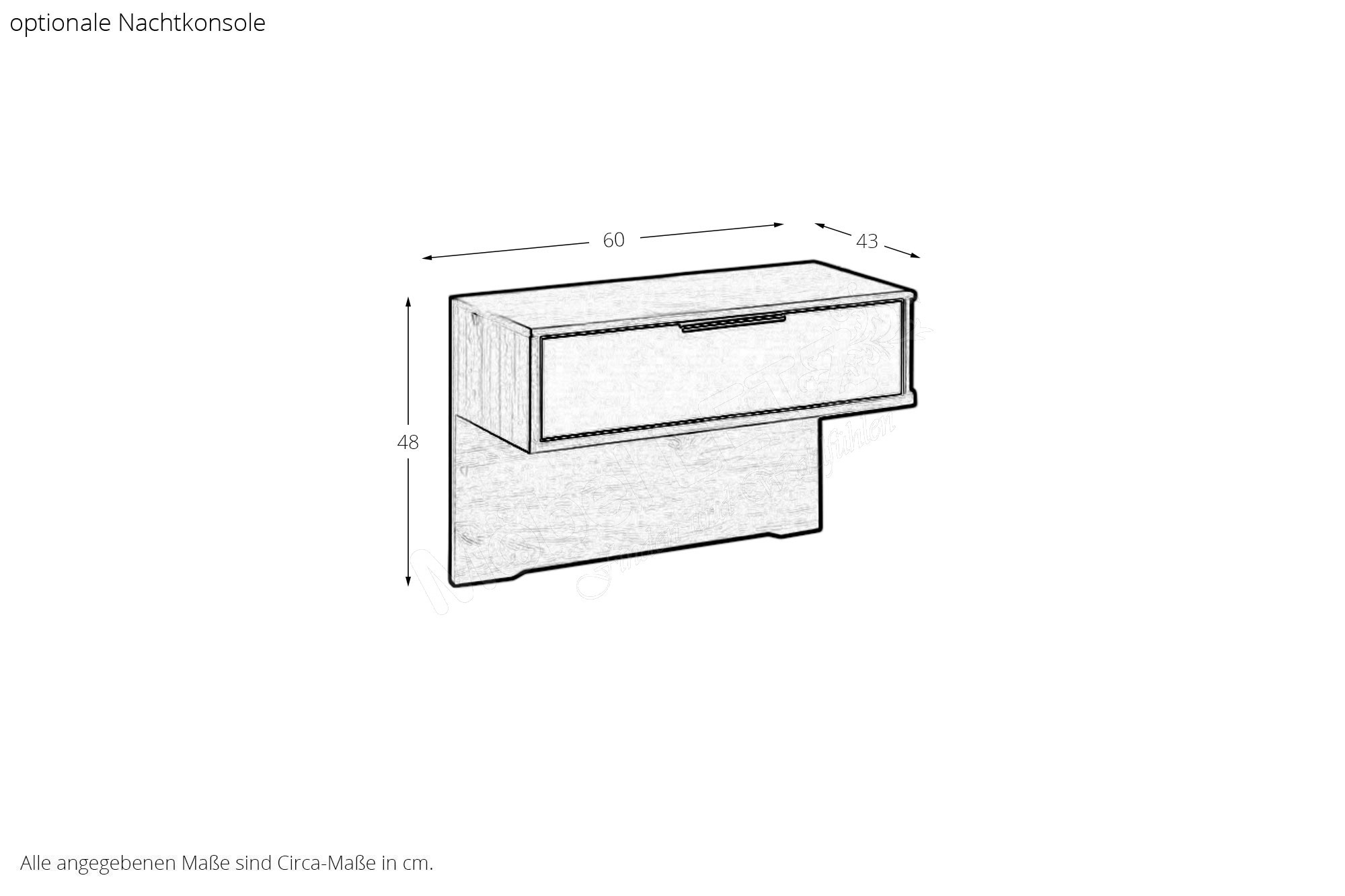 - Bett: Höhe Kopfteil ca. 97 cm, Höhe Fußteil/ Oberkante Bettseite ca. 48 cm