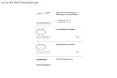 Die Betten dieser Möbelserie sind nicht frei im Raum positionierbar. Teilweise sind die Kopfteile der Betten "zweifarbig" (Unterteil in einer anderen Ausführung als Oberteil des Kopfteils - auf Rückseite sichtbar).
