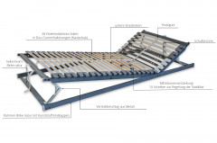 - Besonderheiten: manuell verstellbares Kopf- und Fußteil, Mittelzonenverstärkung (10 Schieber), Schulterkomfortzone