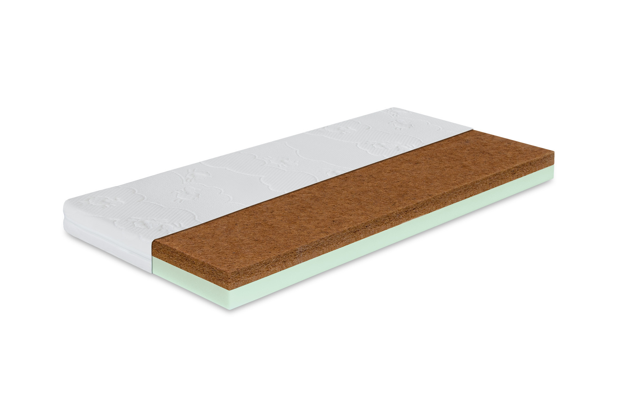 Mit der hochwertigen Kindermatratze Koko-Dream von Ahorn setzen auf einen erholsamen und gesunden Schlaf - eine ideale Voraussetzung für traumhafte Nächte. Dank der Kombination aus hochwertigem Kaltschaum und einer Kokosplatte erzeugt die Matratze im Härtegrad 3 ein angenehm festes Liegegefühl. Eine weitere Stärke der Kaltschaum-Matratze ist, dass sie Ihre Körperwärme aufnimmt und wiedergibt - so bleibt es wohlig warm in Ihrem Bett. Mit dem Vorzug, dass die Matratze mithilfe einer hervorragenden Atmungsaktivität Feuchtigkeit absorbiert. Ein umlaufender Reißverschluss und die Möglichkeit des Waschens bei bis zu 60° C erleichtern Ihnen die Reinigung des Aloe Vera-Matratzenbezuges, welcher darüber hinaus auf Nichtbrennbarkeit geprüft und zertifiziert wurde. Die Liegefläche ist sowohl in der Größe ca. 60 x 120 cm als auch in der Größe ca. 70 x 140 cm erhältlich und passt somit in fast jedes Baby- bzw. Kinderbett. Komfort, der Träume wahr werden lässt - Kindermatratze Koko-Dream von Ahorn.