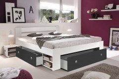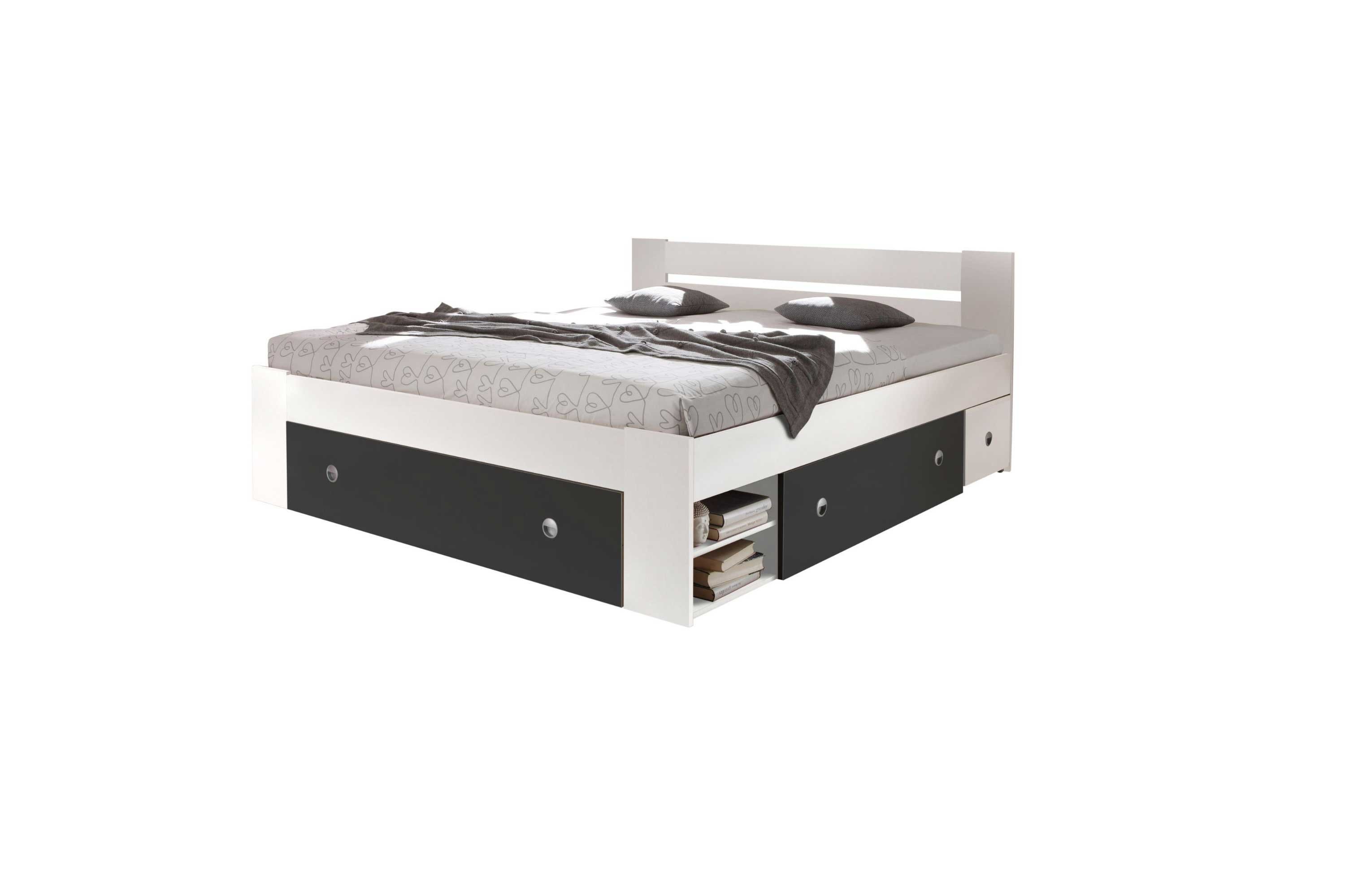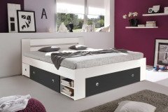 Das Kojenbett Stefan von POL Power ist nicht nur eine schicke Schlafgelegenheit, sondern überzeugt zudem mit vielen Stauraummöglichkeiten und durchdachten Details. Das Funktionsbett zeigt sich in modernem Weiß und setzt mit den Schubkästen in der Absetzung Graphit edle Akzente. Ein Kopfteil, das in einer durchbrochenen Paneeloptik erscheint, bildet einen beachtenswerten Abschluss am Ende des Bettes. Mit einem dunkelgrauen Schubkasten unter jeder Liegeflächenseite und am Fußende eröffnen sich ungeahnte Verstaumöglichkeiten. Offene Fächer laden Bücher bzw. die abendliche Bettlektüre zum Verweilen ein. Ein besonderer Clou an diesem Bett sind die beiden integrierten Nachtkonsolen. Diese können beim Saubermachen oder falls gerade Platzmangel herrscht, einfach unter das Bett geschoben und bei Bedarf nach Belieben wieder hervorgezogen werden. Diese praktische Ruhezone ist in verschiedenen Ausführungen erhältlich und kann mit einem passenden Kleiderschrank ergänzt und so zu einem Schlafzimmer komplettiert werden. Das Stauraum-Bett Stefan von POL Power - für alle, die funktionell denken und den Platz unter der Schlafgelegenheit sinnvoll nutzen möchten.