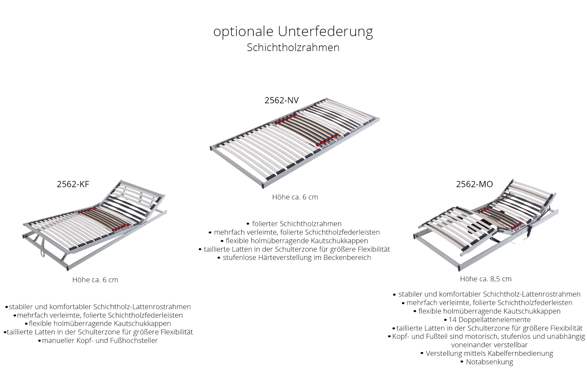 - Bettrahmen: GB50 - Massivholz, durchgehende Lamellen