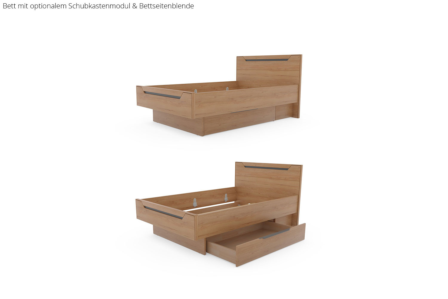 Hinweis: Schubkastenmodule sind bis zu einer Liegeflächenbreite von ca. 140 cm einseitig & ab einer Liegeflächenbreite von ca. 160 cm beidseitig möglich. (Art-Nr. 350970+350974+2x300231)