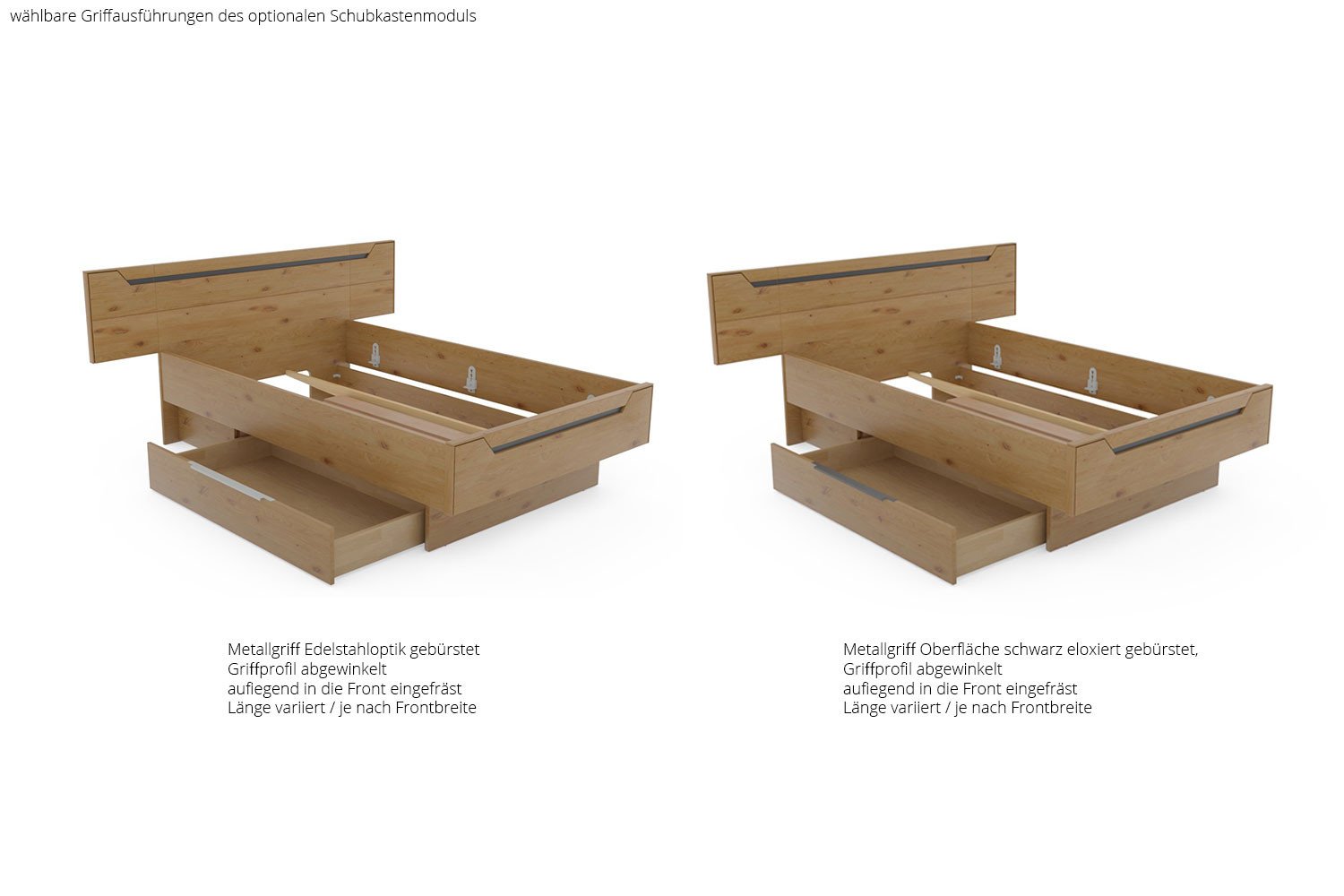Hinweis: Schubkastenmodule sind bis zu einer Liegeflächenbreite von ca. 140 cm einseitig & ab einer Liegeflächenbreite von ca. 160 cm beidseitig möglich. (Art-Nr. 350970+350974)