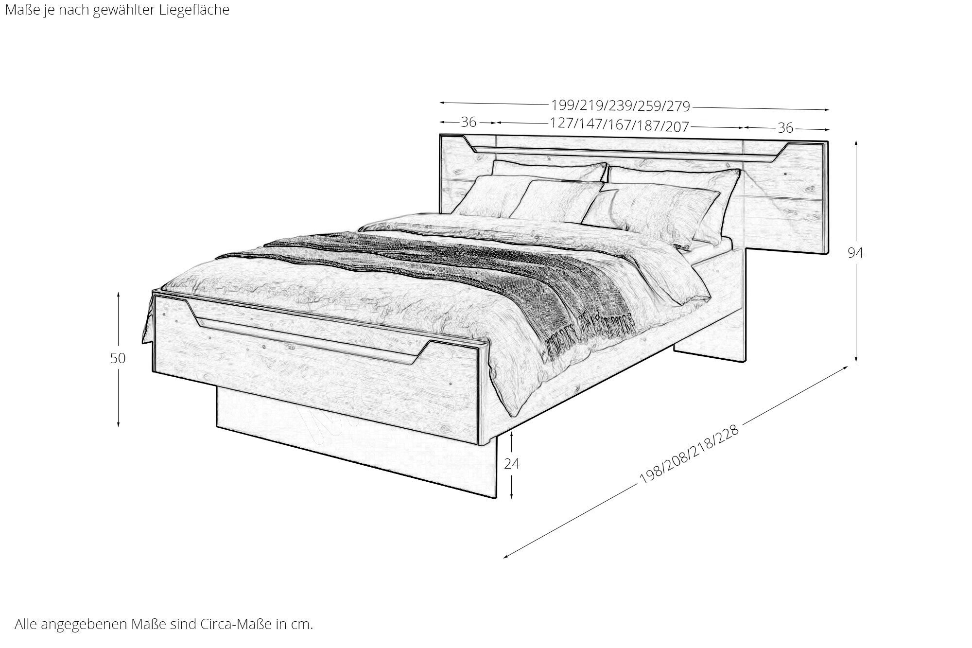 - Höhe Bettseitenunterkante: ca. 24 cm