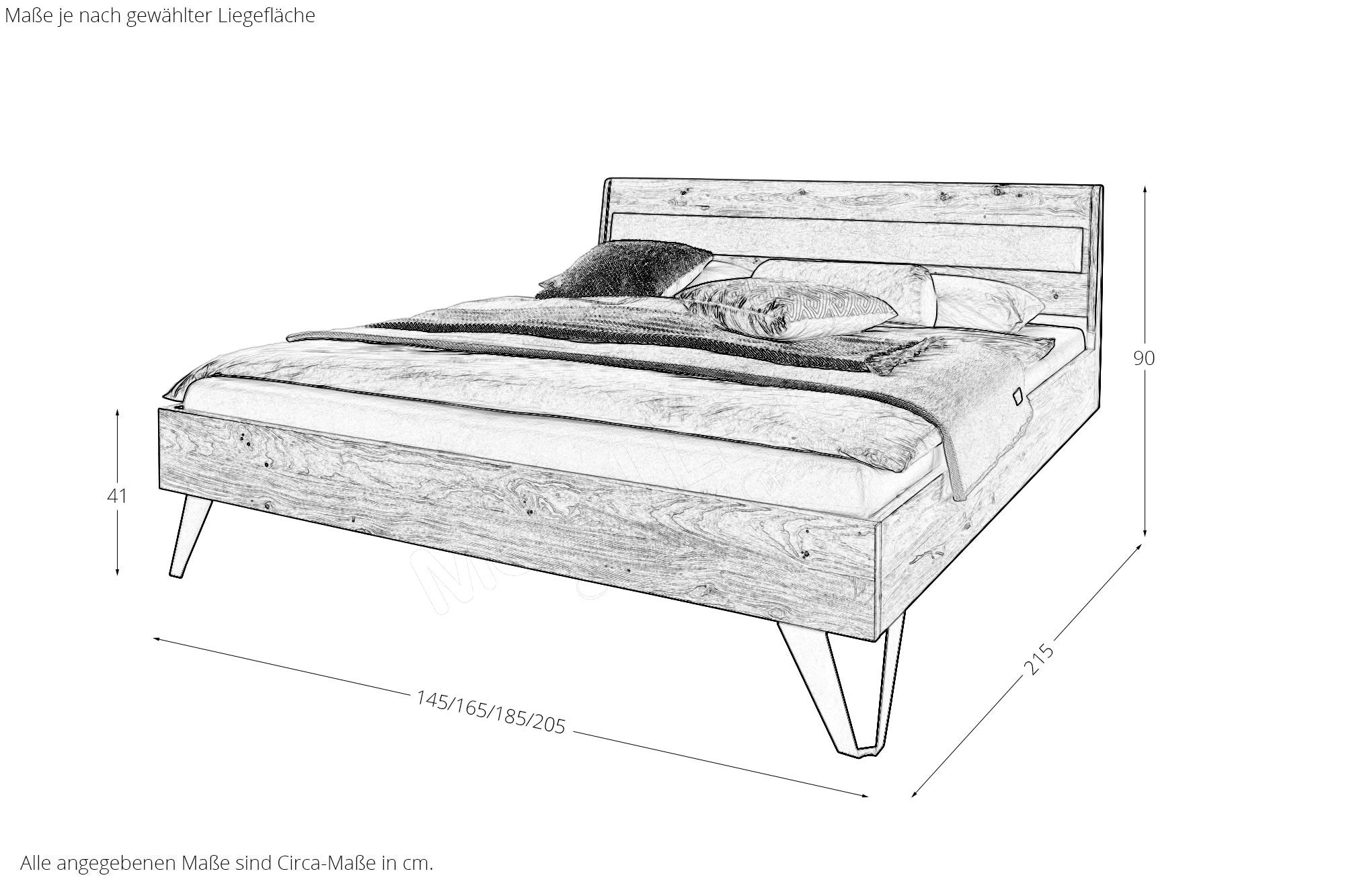 Doppelbett von GK Möbelvertrieb - Modell BE-0823 - mit schwarzen Metallfüßen BE-0823 - Natürlich besser schlafen mit unserem Bettsystem aus Wildeiche!