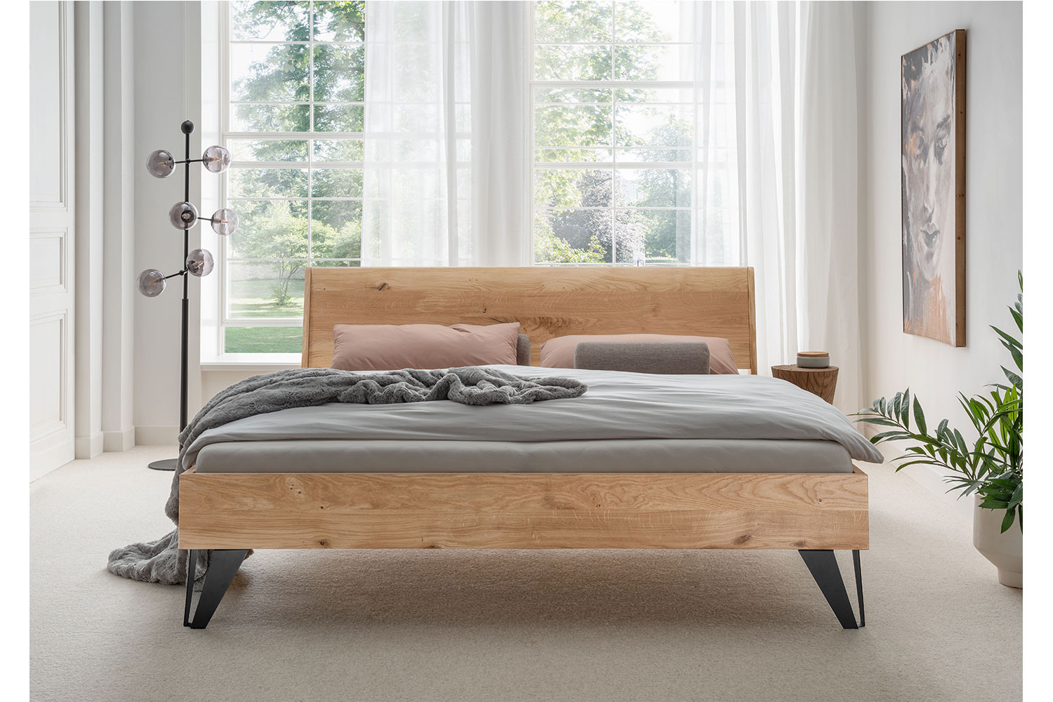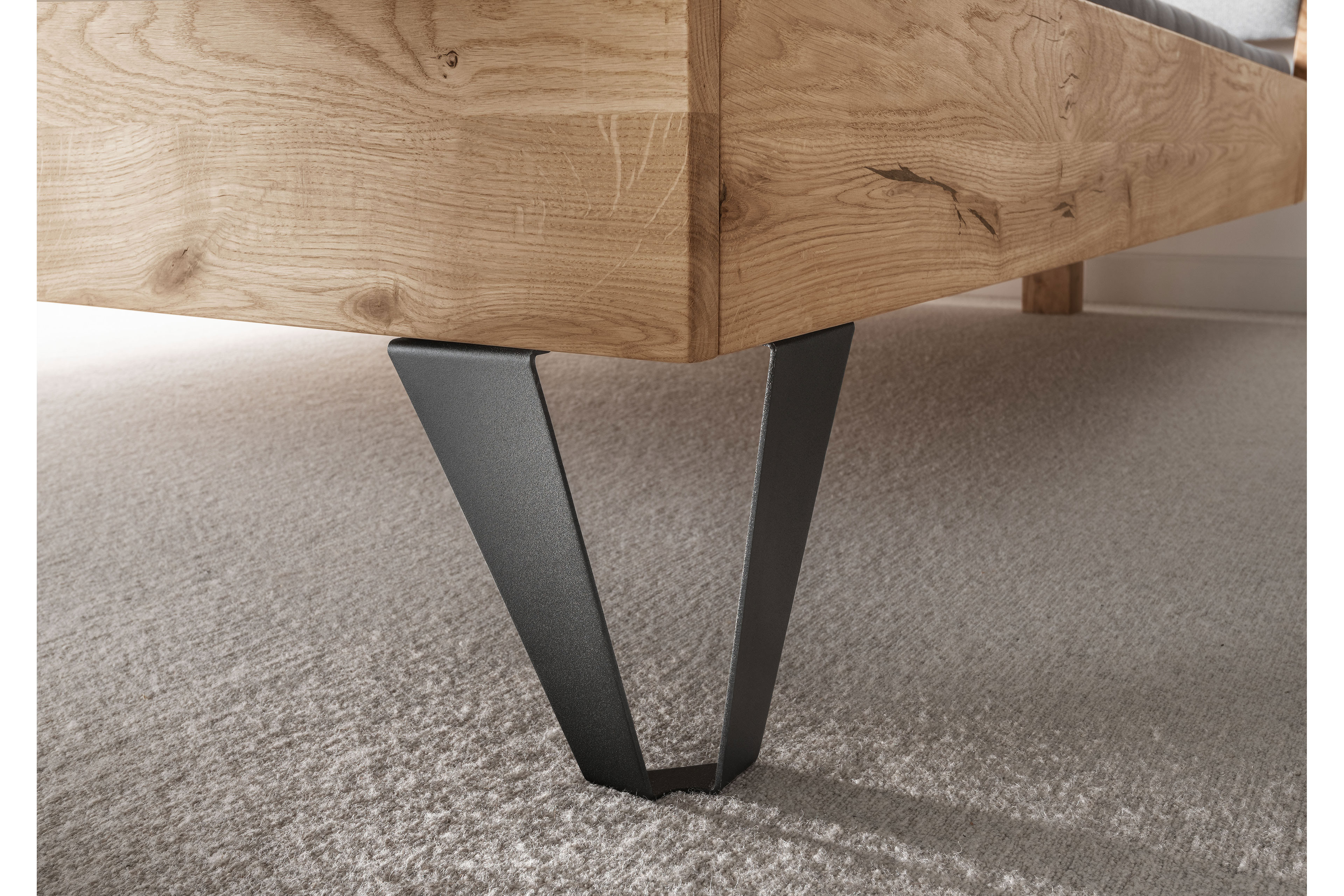 - Bettrahmen: Wildeiche massiv, geölt