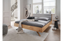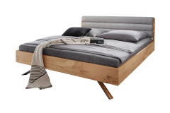 Hier haben Sie die Möglichkeit, zur Ruhe zu kommen und den Komfort eines hochwertigen Massivholzbettes zu erleben. Charismatische Wildeiche zeichnet das Modell BE-0824 von GK Möbelvertrieb aus und wird hier mit schräg gestellten Metallfüßen kombiniert. Es treffen somit nicht nur zwei unterschiedliche Materialien aufeinander, sondern auch zwei verschiedene Gestaltungskontraste, nämlich das geradlinige Design des Bettrahmens und die diagonale Basis der Bettfüße. Diese sorgen dafür, dass die Liegefläche nahezu schwebt und verleihen dem Möbelstück eine besonders leichte Optik. Ein weich gepolstertes, hellgraues Kopfteil lädt zum Relaxen und Entspannen ein und rundet das moderne Gesamtkonzept ab. Unsere Zusatzoptionen ermöglichen es Ihnen, die Liegefläche individuell anzupassen oder auch ein Nachtkonsolen-Paar hinzuzufügen. BE-0824 von GK Möbelvertrieb - für Betten die Sie nicht nur nutzen, sondern lieben werden.